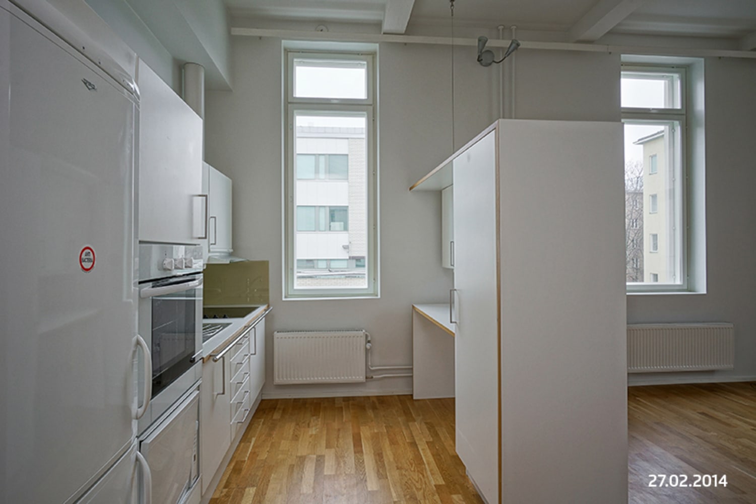Arvostetulla asuinalueella, hyvien liikenneyhteyksien ja päivittäispalveluiden tuntumassa sijaitsevan tilavan yksiön katseenkiinnittäjä on lähes kolmeen ja puoleen metriin nouseva huonekorkeus. Korkeat ikkunat ja vaaleat pinnat lisäävät kodin ilmavuuden tuntua ja helppokulkuisuutensa ansiosta koti sopii myös liikuntaesteiselle.