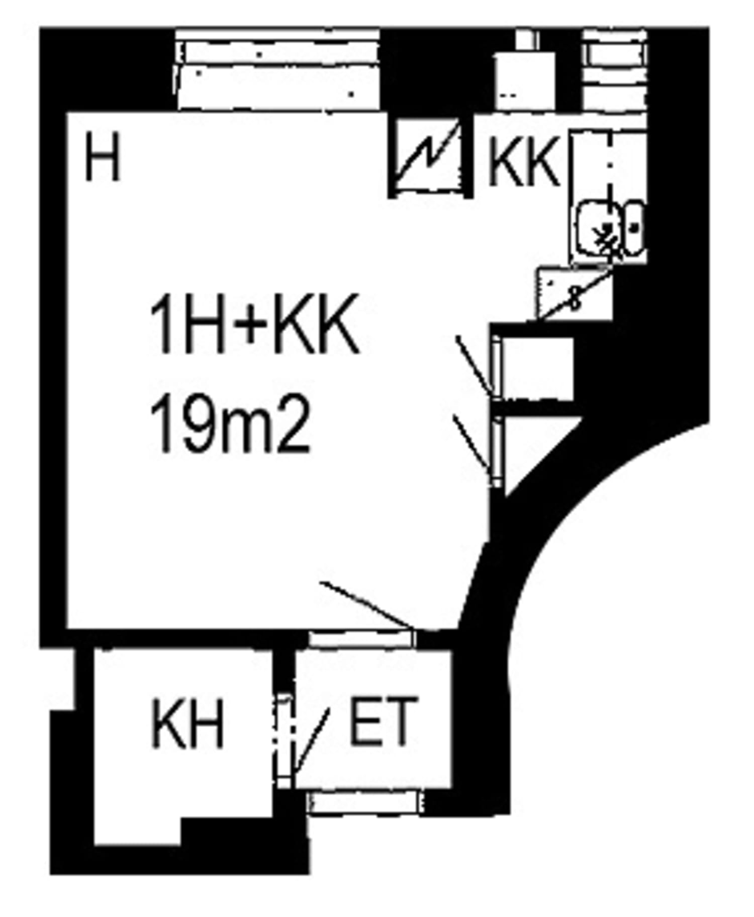 - 1h+kk, 19 m²