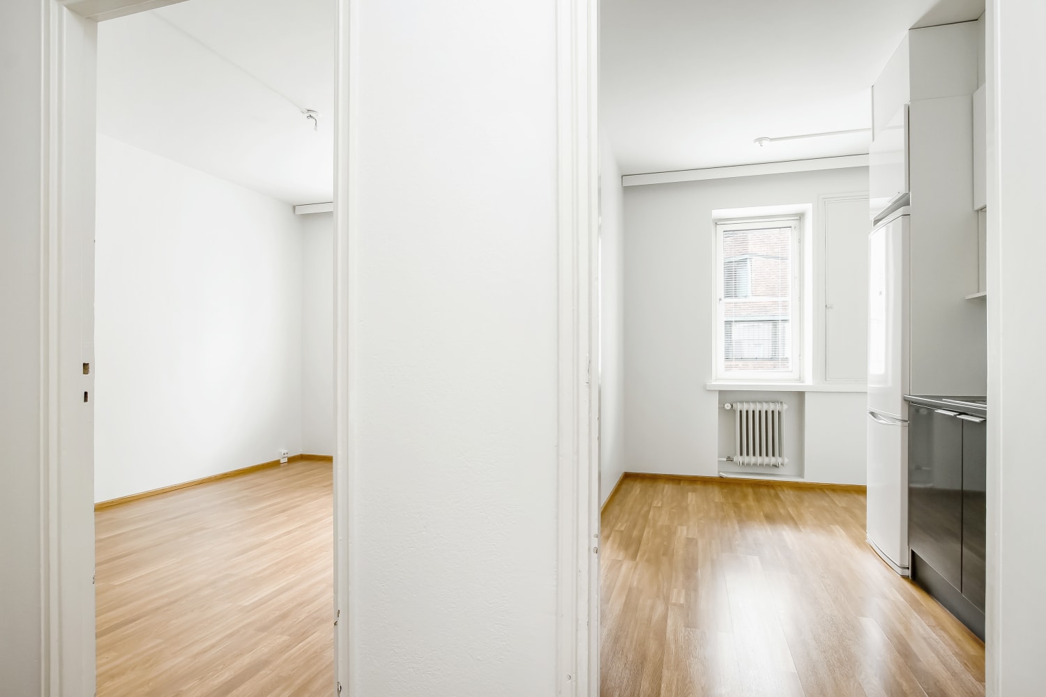 Kompakti kaupunkikoti sijaitsee hyvällä paikalla vartin raitiovaunumatkan päässä keskustasta. Asunnon ikkunat avautuvat Messeniuksenkadun puolelle.