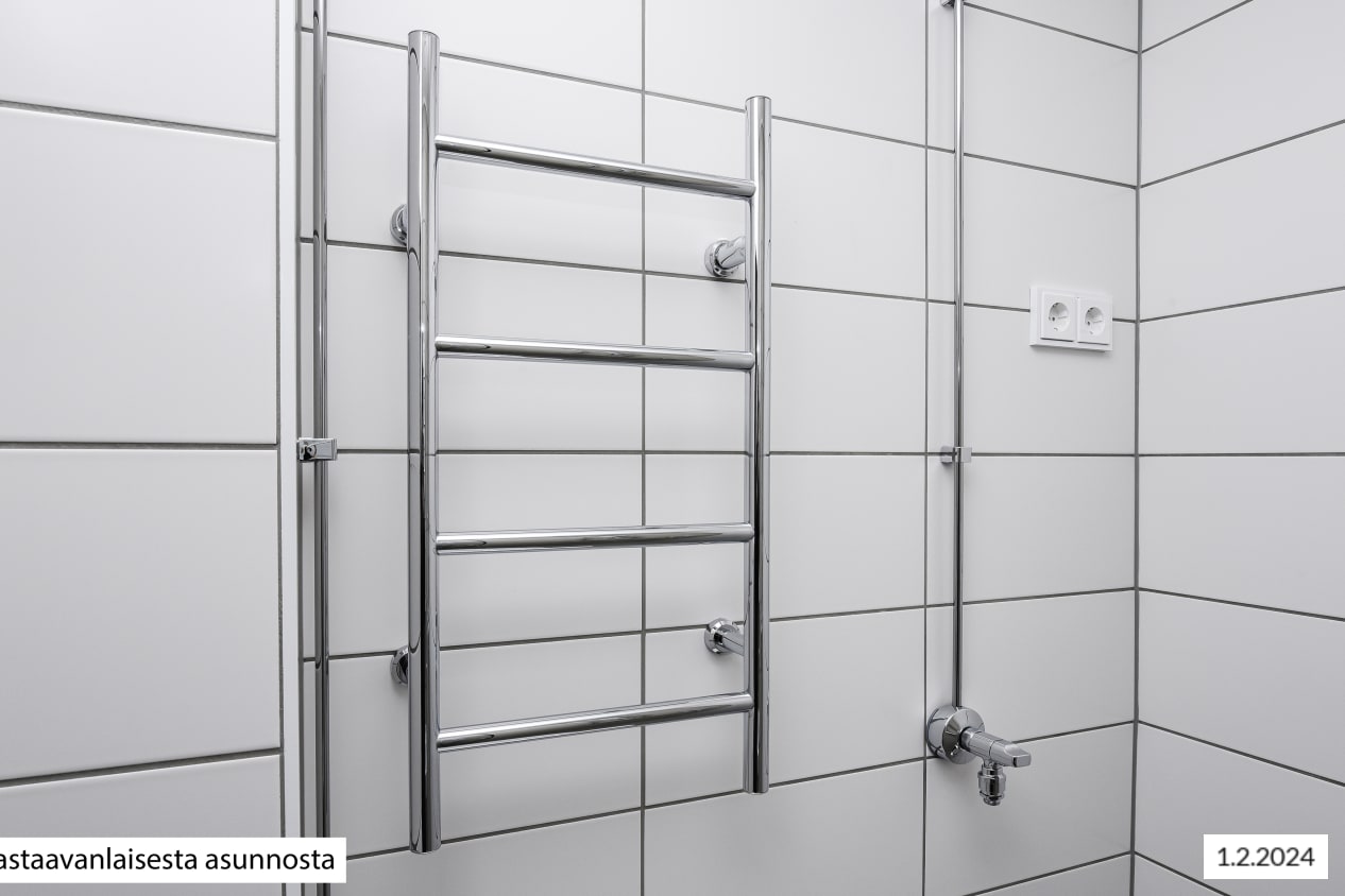 Asuinhuoneiden lattiamateriaalina on laminaatti, kylpyhuoneen lattia on kaakeloitu ja seinissä on osalaatoitus. 2024 uusitussa keittiössä on jenkkikaappi ja kaksilevyinen liesi.