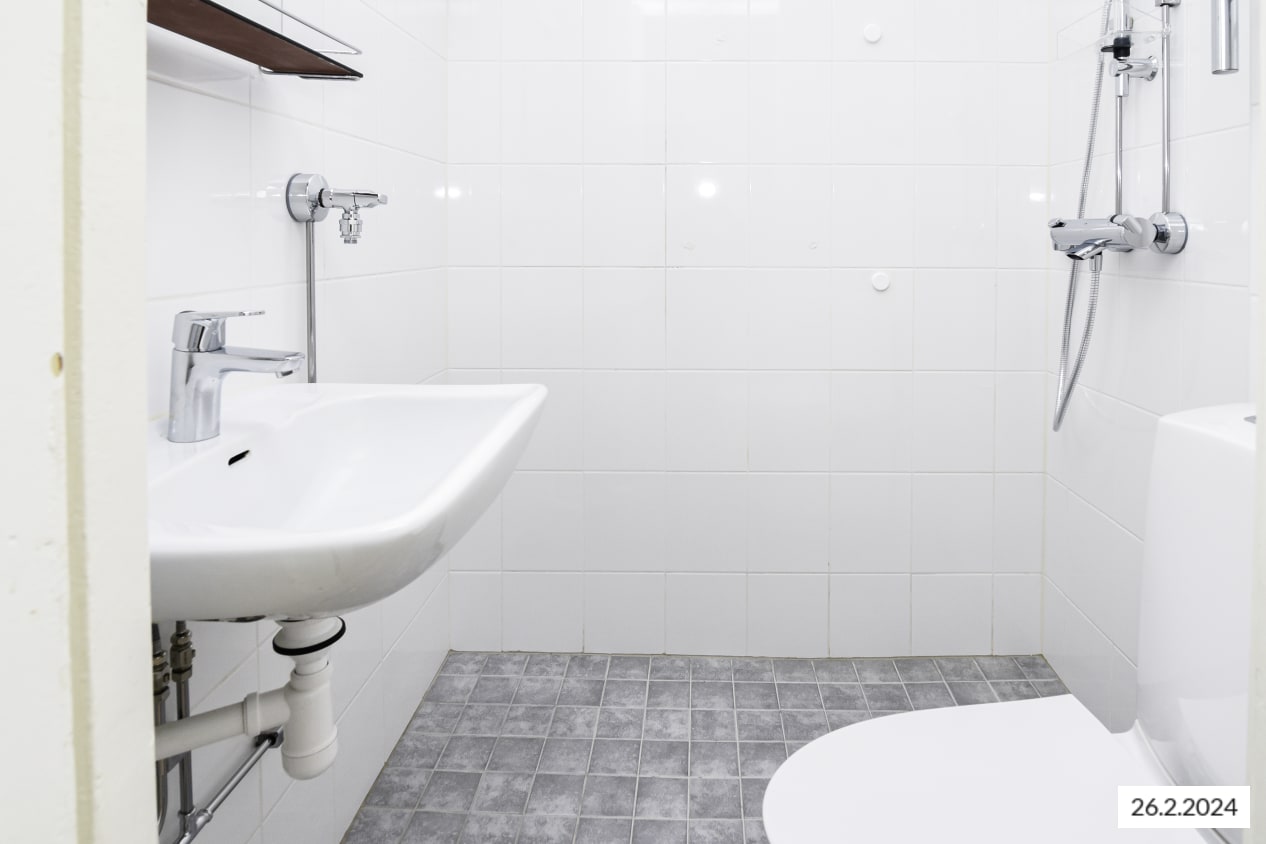 Asuinhuoneiden lattiamateriaalina on laminaatti. Kylpyhuoneen lattia on laatoitettu ja seinissä on osalaatoitus. 2024 uusitussa keittiössä on jää-pakastinkaappi ja liesi.