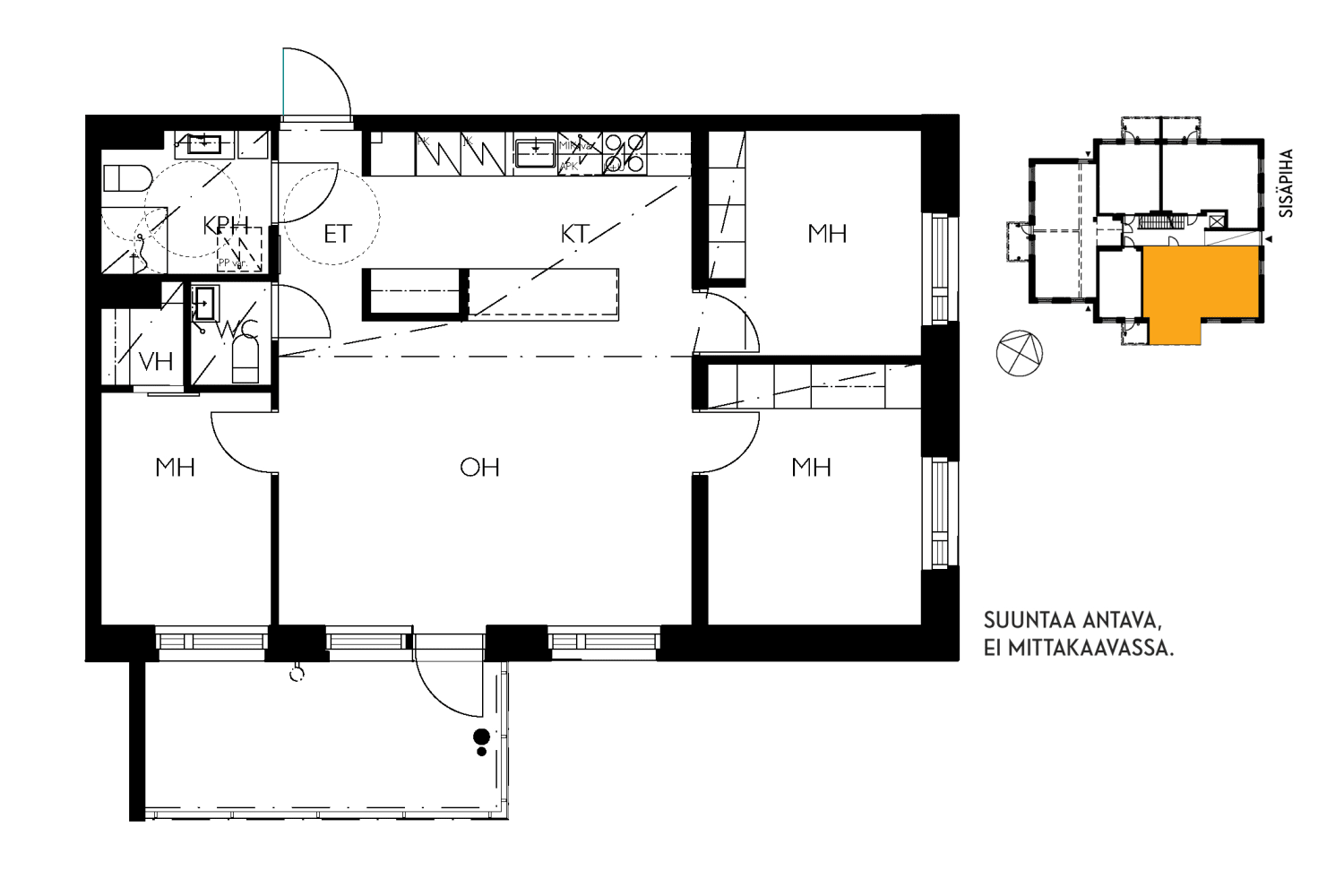 Keittiössä on helposti puhtaana pidettävä ja nopea induktioliesi ja astianpesukone. Kylpyhuoneet on kalustettu kotimaisen Kide-malliston kalusteilla. Erillinen pikku-wc sujuvoittaa arkea. Kylpyhuoneessa on myös paikka pyykkikoneellesi.
