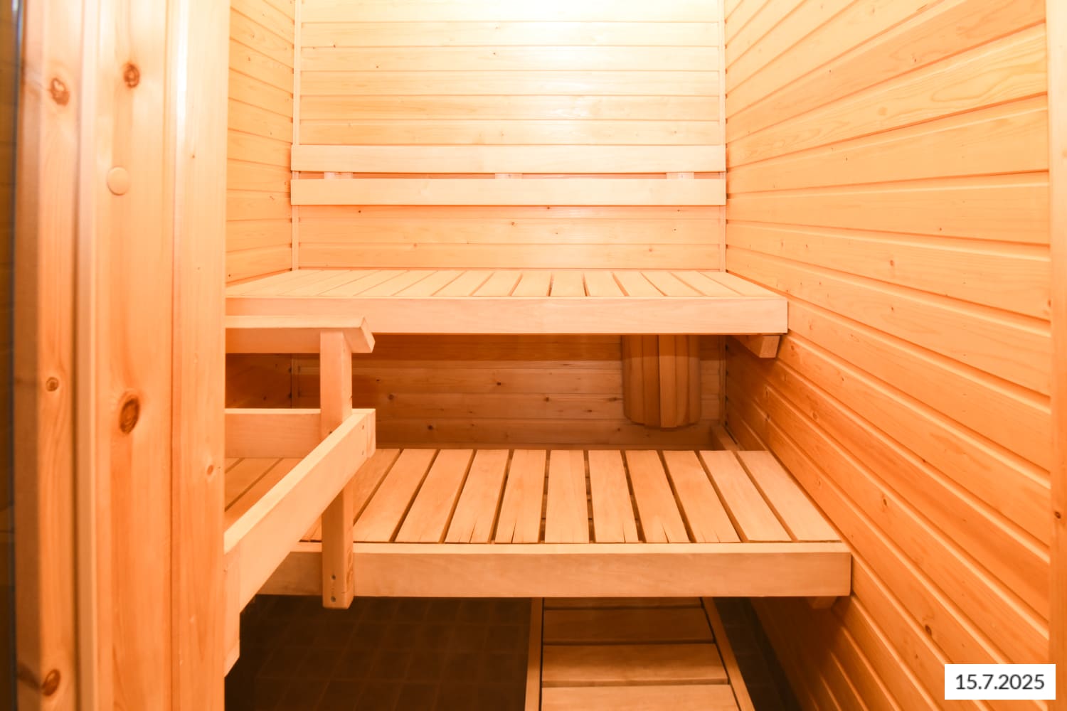 Tilavassa kylpyhuoneessa mahtuu peseytymään ja kätevän tason ansiosta myös pyykkihuolto on helppoa. Pyykinpesukoneelle on tilavaraus. Kodin kruunaa oma sauna, jossa on mukava rentouta pitkän päivän päätteeksi.