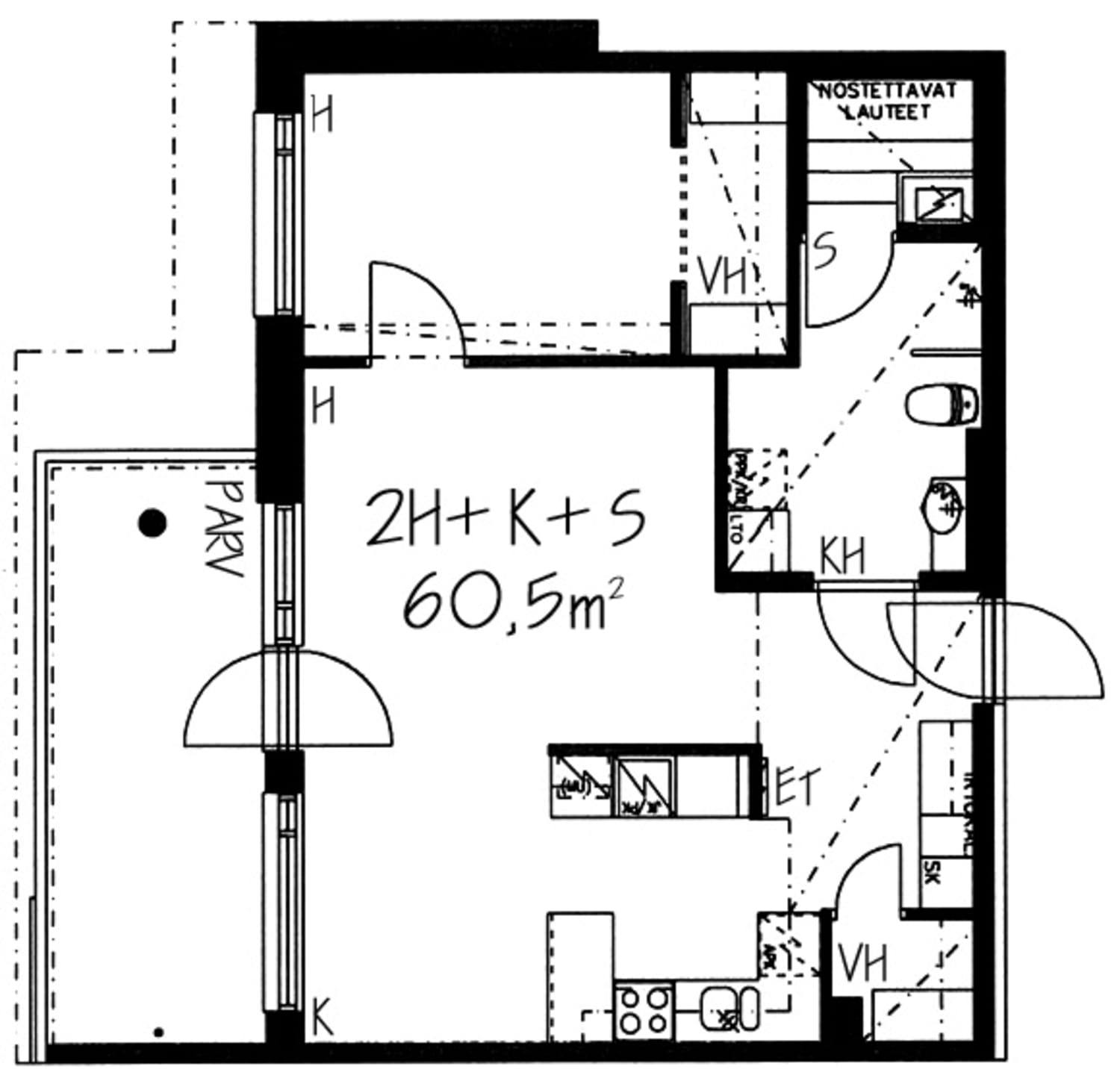 Viihtyisän korttelipihan laidalla sijaitsevan rauhallisen ylimmän kerroksen kaksion fiksu pohjaratkaisu tekee sisustamisesta helppoa. Kodikas keittiö avautuu olohuoneen puolelle yhtenäiseksi tilaksi ja reilun kokoiselta länsiparvekkeelta voi seurata leikkipihan tapahtumia. Säilytystilaa löytyy peräti kahdesta vaatehuoneesta.