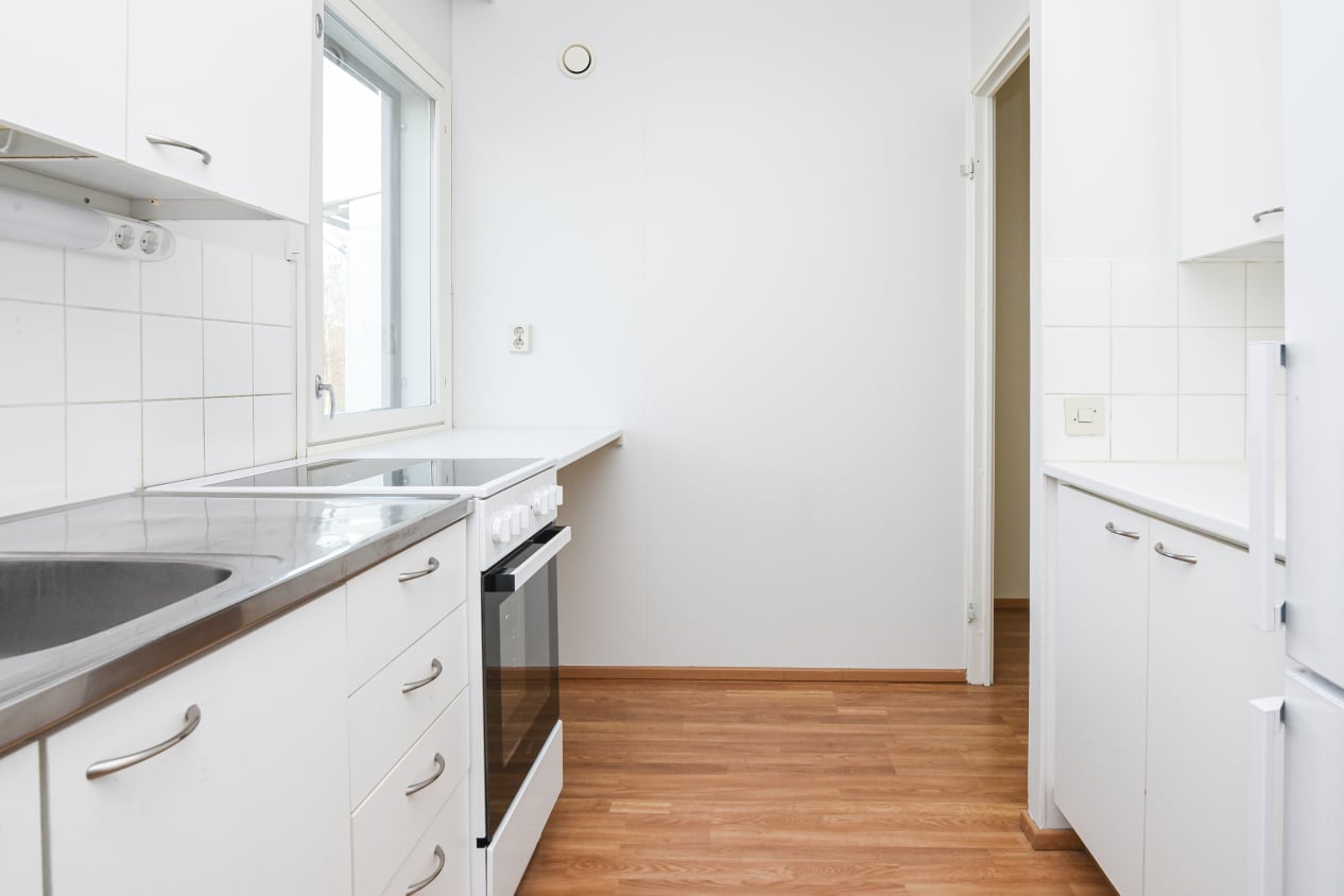 Rauhallisen suojaisalla pientaloalueella, kodikkaan leikkipihan laidalla odottaa uusia asukkaitaan tilavalla pohjaratkaisulla varustettu kaksio. Asuntoon on oma sisäänkäynti luhtiportaikon kautta. Valoisassa makuuhuoneessa on runsaasti kaappitilaa sekä kaakkoon pihan puolelle avautuva ranskalainen parveke. Asuinhuoneiden lattiamateriaalina on laminaatti. Kylpyhuoneen seinät on kaakeloitu. Asunnossa on tilavaraukset astian- ja pyykinpesukoneille. Keittiössä on jää-pakastinkaappi ja nelilevyinen liesi