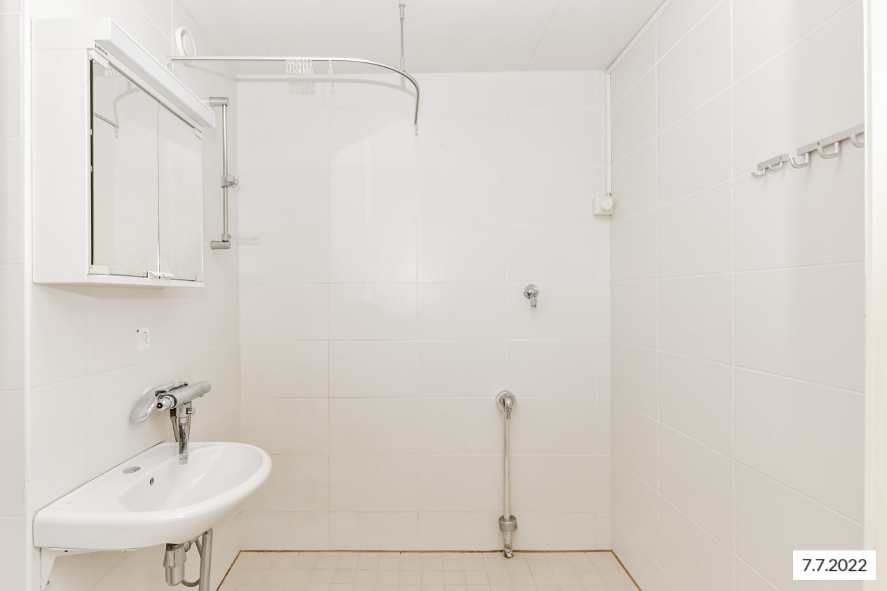 Kylpyhuoneessa on tilavaraus sekä paikka pesukoneellesi. Säilytystilaa löytyy reilusti eteisen kaapeista. Yhdessä viereisen taloyhtiön kanssa rakennukset muodostavat suojaisan pihapiirin, jonka keskellä on vehreä leikkipiha.