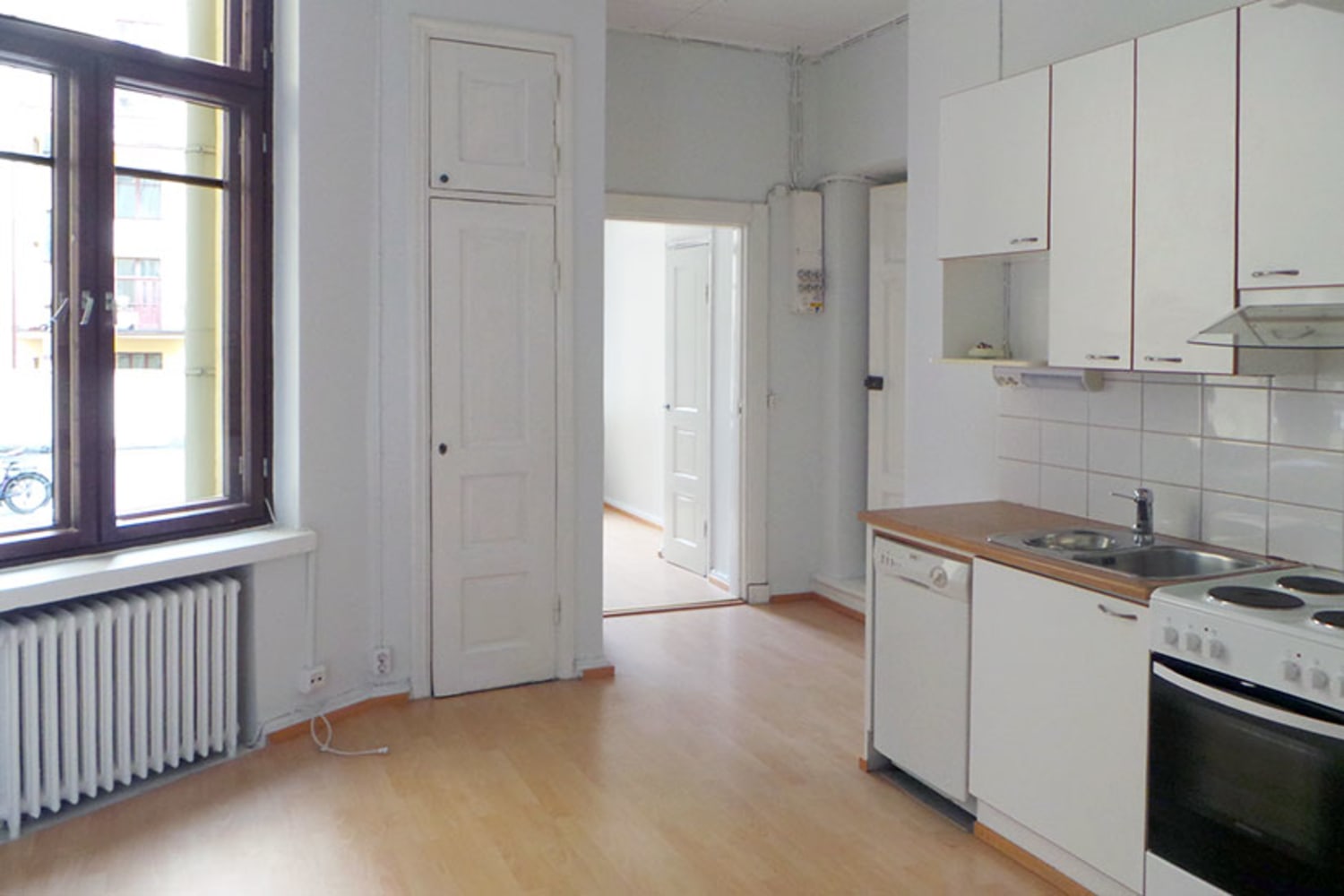 Hyvällä paikalla kymmenen minuutin kävelymatkan päässä keskustasta sijaitsevassa jugend-talossa on vapautunut pieni ja kodikas tupakeittiöllinen asunto, jonka ikkunat avautuvat sisäpihalle.