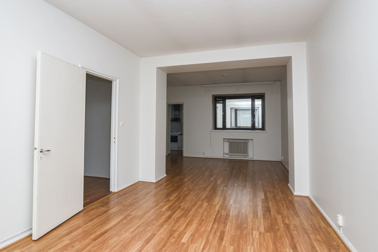 Arvostetulla asuinalueella pikkuputiikkien, kahviloiden ja Kaivopuiston tuntumassa odottaa uusia asukkaitaan todella tilava kaksio. Makuu- ja olohuoneen ikkunat antavat Tarkk'ampujankadun puolelle, keittokomerosta ja ruokailutilasta näkee pienelle sisääntulopihalle.