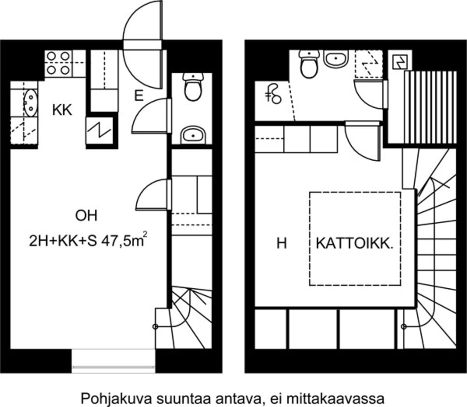 Sympaattinen kahden kerroksen vuokrakaksio herättää taatusti keskustelua illanistujaisissa. Vanhaan teollisuusrakennukseen saneeratussa kaupunkikodissa on mm. kattoikkuna ja oma pieni sauna. Alakerran ikkunasta avautuu näkymä Aleksis Kiven kadun puolelle.