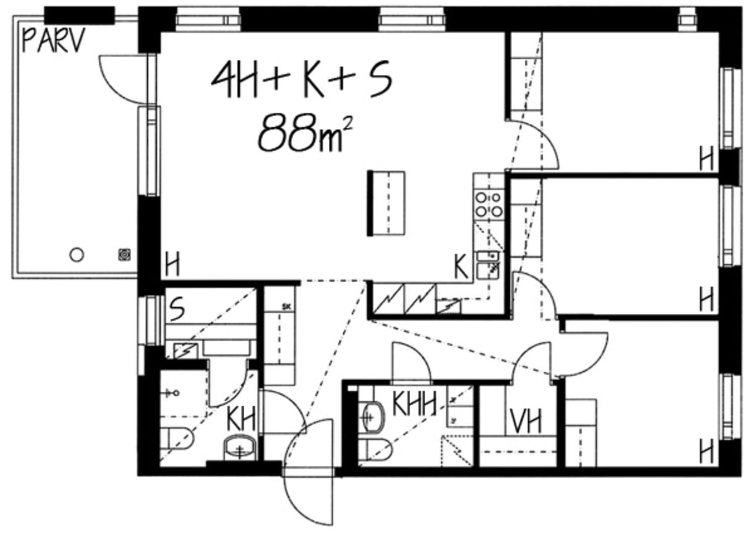 - 4h+k+s, 88 m²