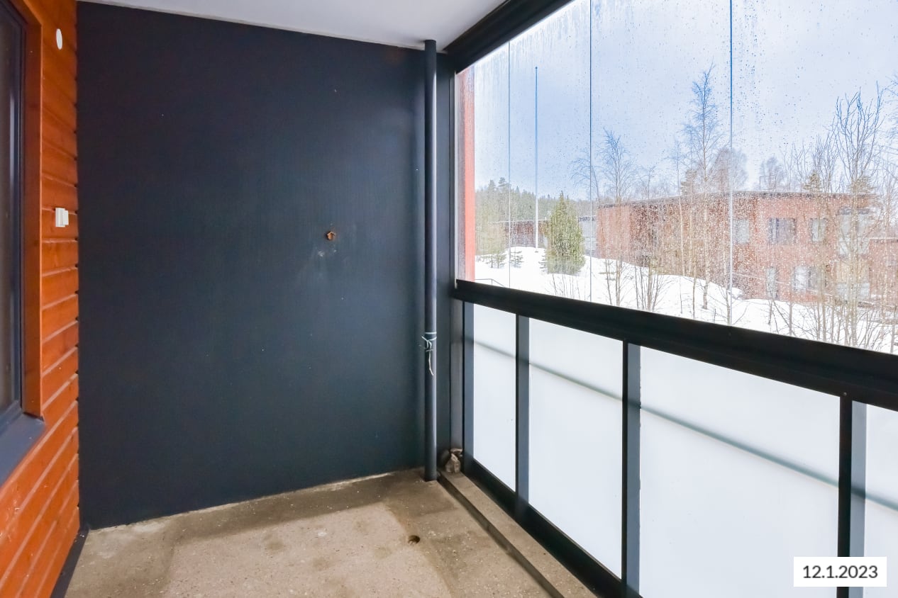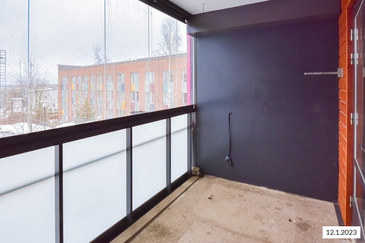 Asunnon valttina on todella tilava lasitettu parveke, jolta avautuu maalauksellinen näkymä mäntykallioiselle pihalle. Asuinhuoneiden lattiat ovat tammilaminaattia. Eteisen kaapistossa on isot peiliovet.