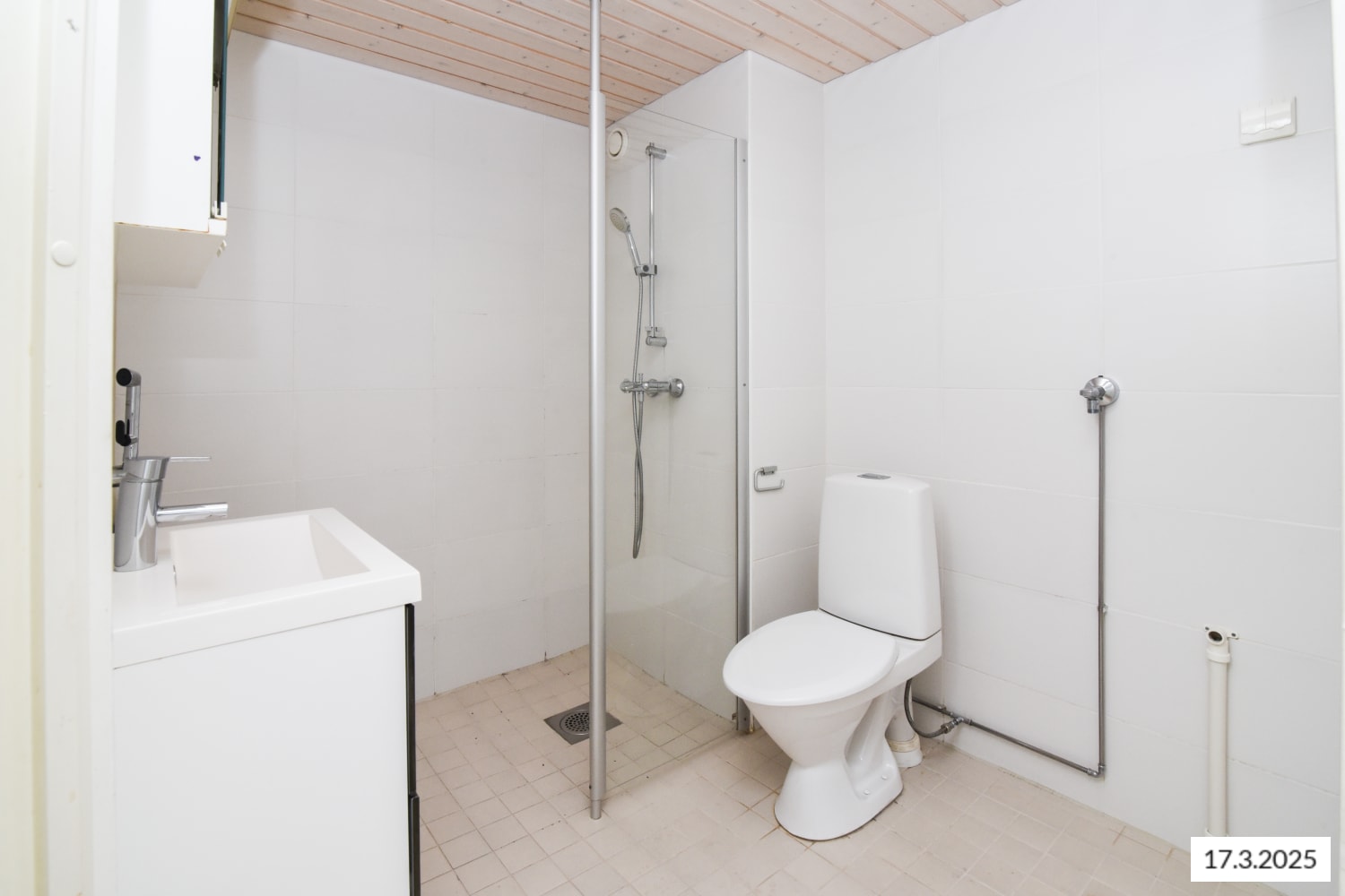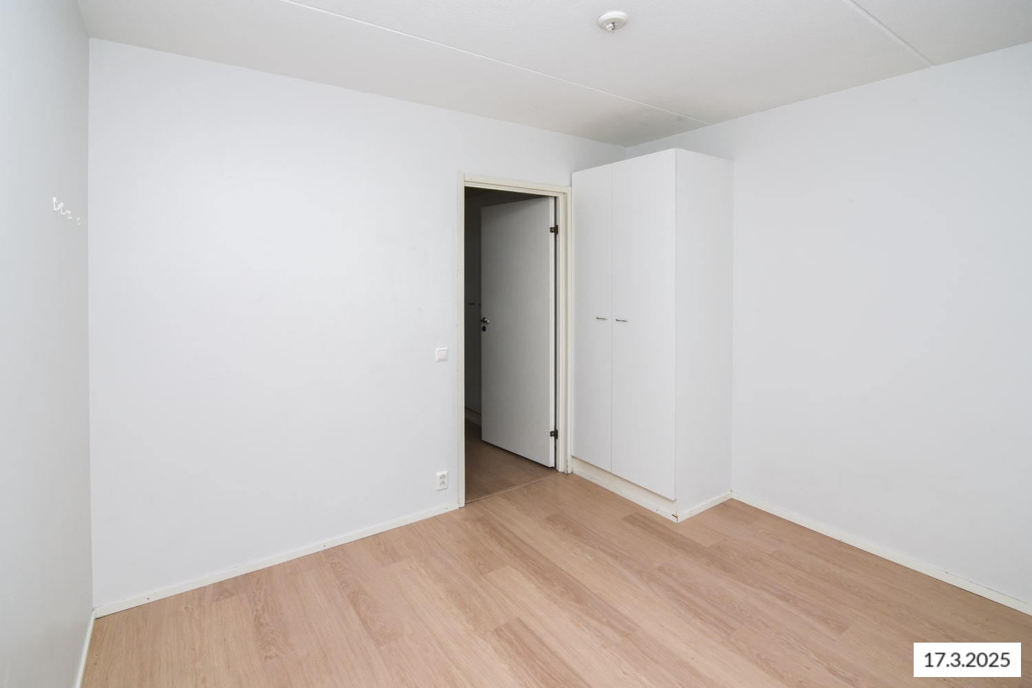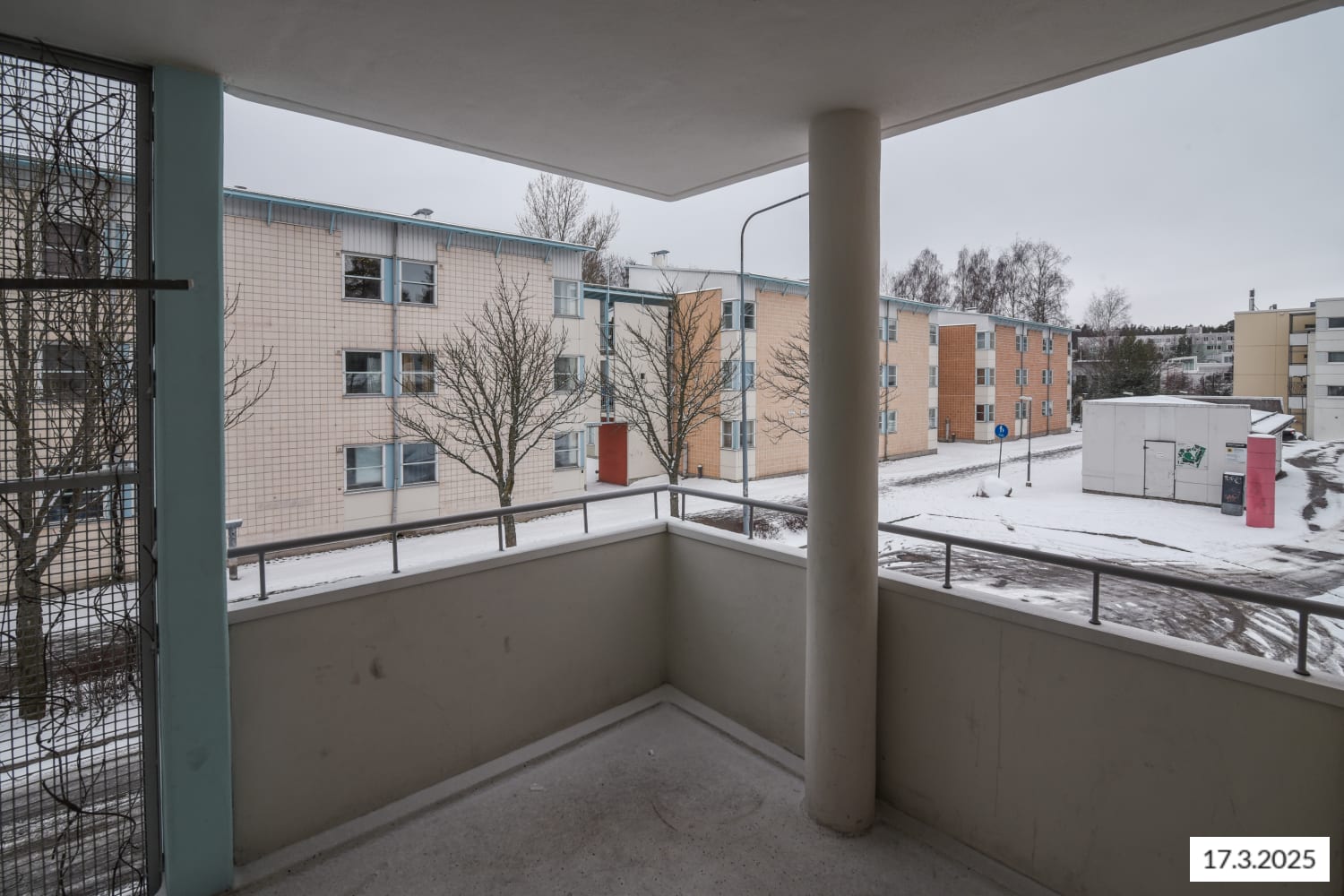 Valoisa keittokomero, helposti jäsenneltävä pohjaratkaisu ja iso, etelään avautuva parveke tekevät tästä pikkukaksiosta tavoittelemisen arvoisen. Kylpyhuoneen seinät on kaakeloitu.
