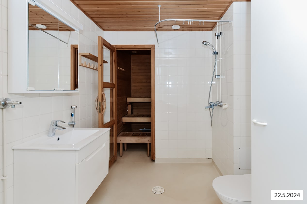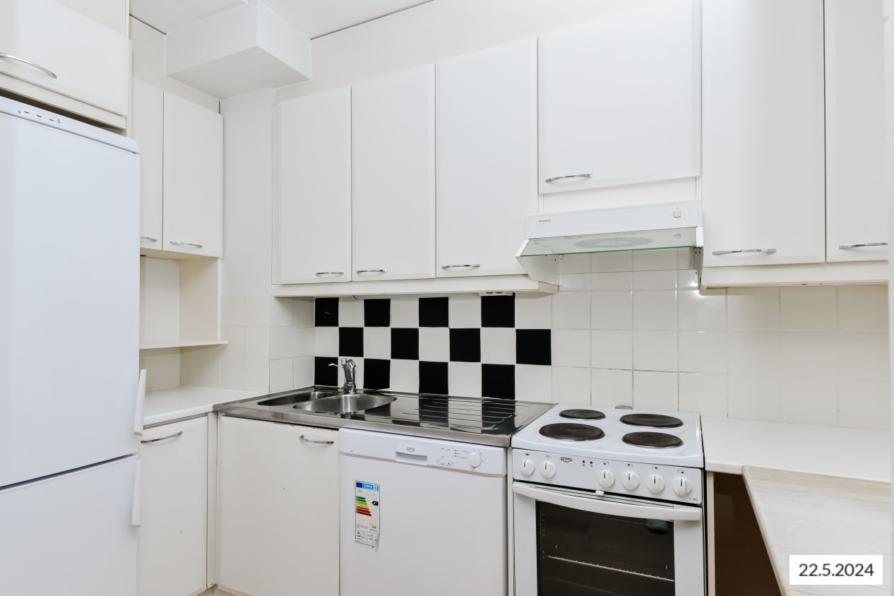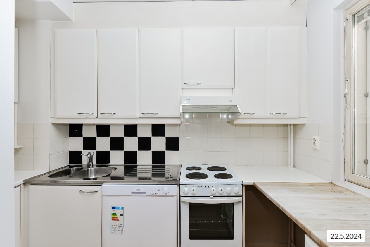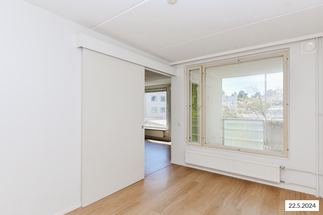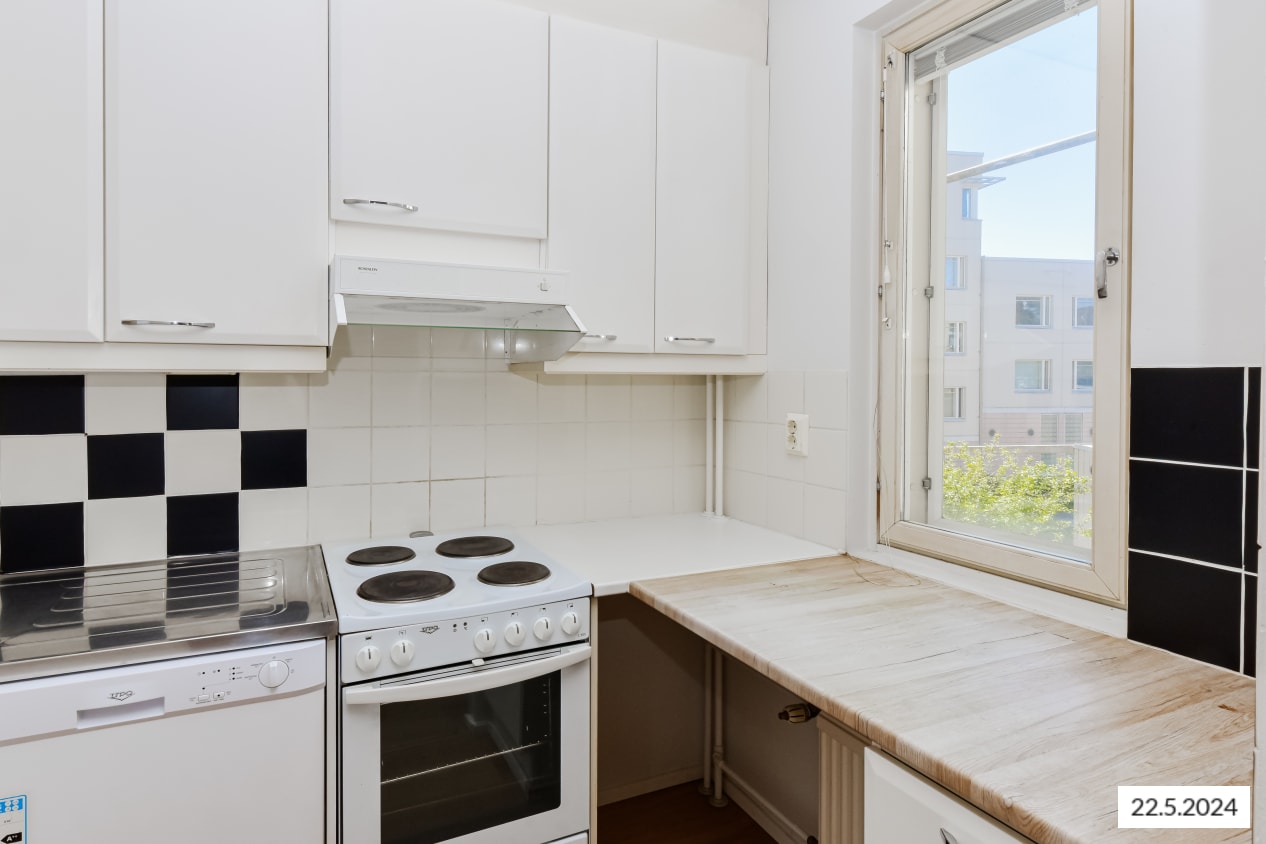 Kaksion asuinhuoneiden lattiamateriaalina on laminaatti ja kylpyhuoneen seinät on laatoitettu. Keittokomerossa on tilavaraus astian- ja kylpyhuoneessa pyykinpesukoneelle.