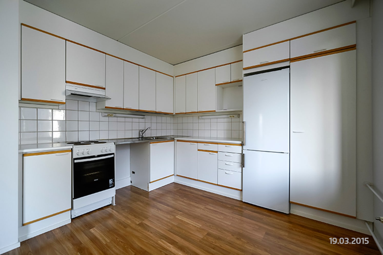 Asunnossa on kauniit laminaattilattiat ja laatoitettu kylpyhuone. Keittiössä on jää-pakastinkaappi ja nelilevyinen sähköliesi