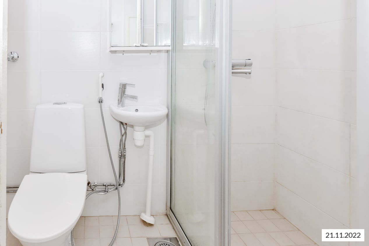 Asuinhuoneiden lattiamateriaalina on laminaatti, kylpyhuone on kokonaisuudessaan kaakeloitu. Keittiössä on jää-pakastinkaappi ja varaus astianpesukoneelle.