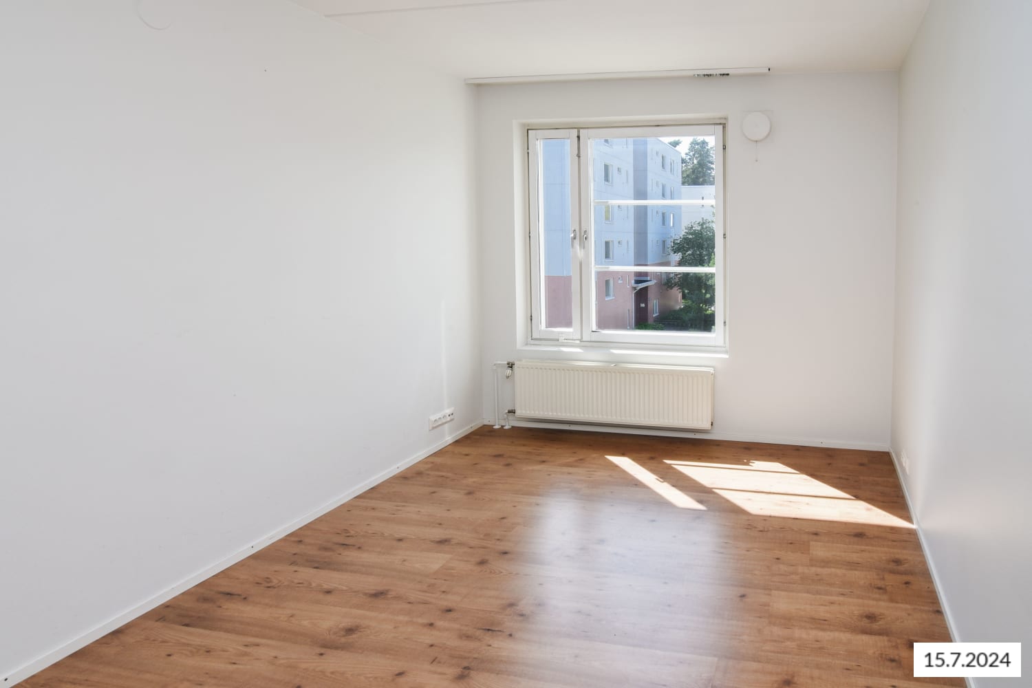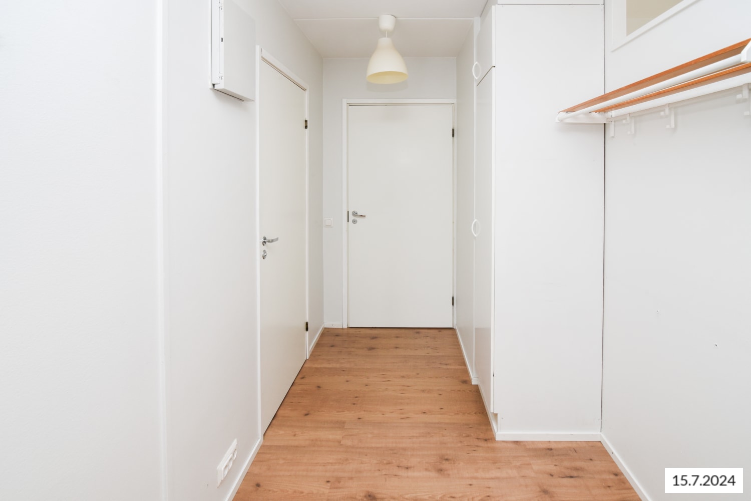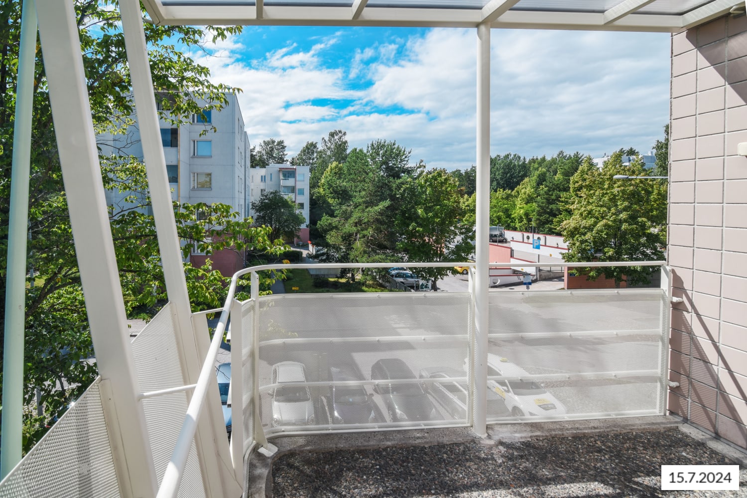 Kallahden ranta-alueella sijaitsevan taloyhtiön ylimmän kerroksen kaksiossa on kauniit laminaattilattiat ja valoisat puitteet. Asunnossa on erillinen makuuhuone, jossa on valmista säilytystilaa korkeissa kaapeissa. Keittiötila yhdistyy olohuoneen kanssa luoden miellyttävän oleskelutilan.