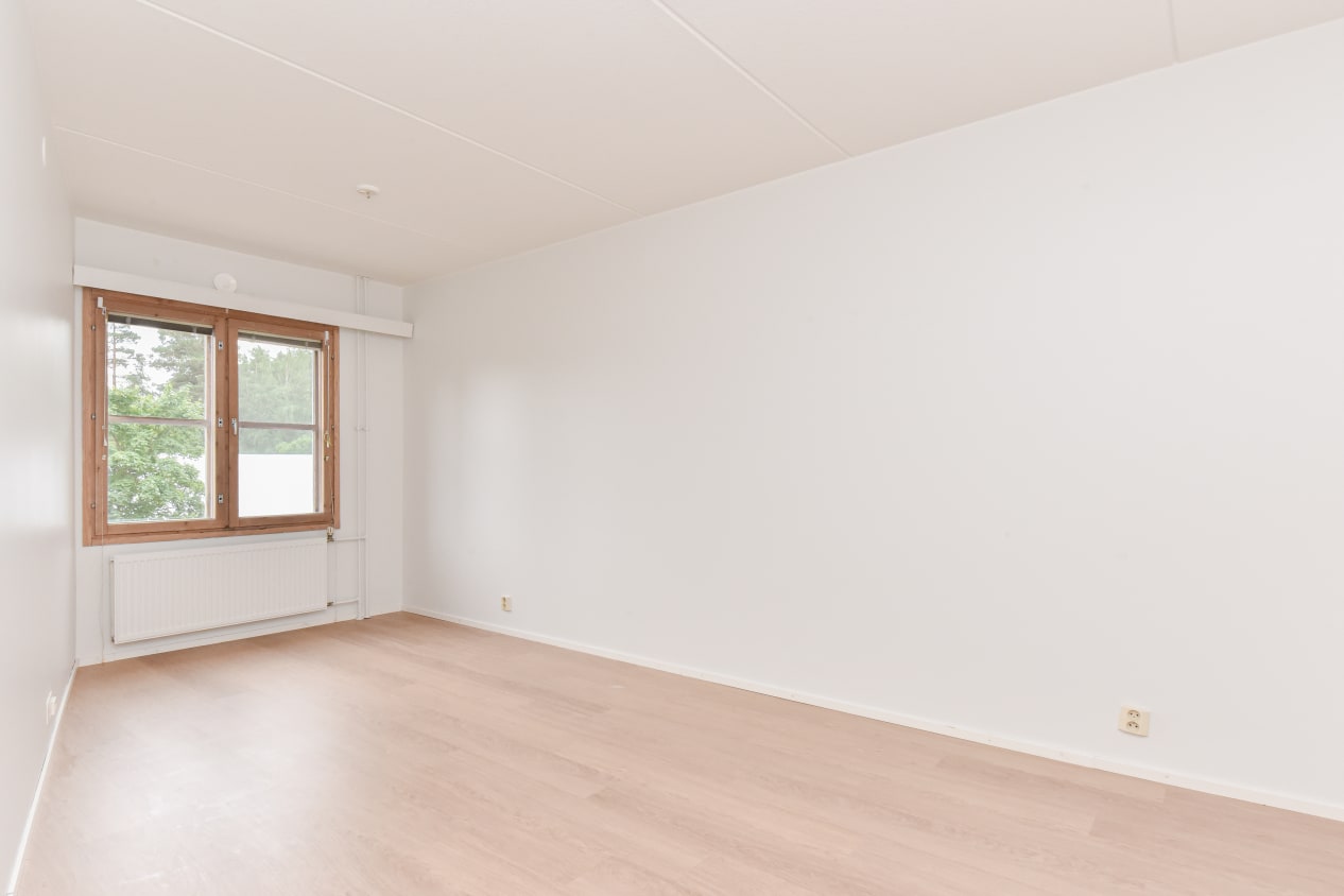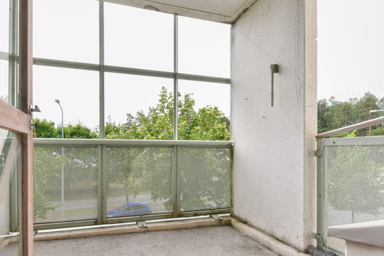 Pohjavedenpuiston ja Ison Kallahdenpuiston välissä sijaitsevassa matalassa kerrostaloyhtiössä on vapautunut kodikas kaksio, jonka parveke avautuu keittiöstä eteläkaakkoon Meri-Rastilan tien puolelle. Asunnon perinteistä pohjaratkaisua on maustettu vinolla väliseinällä, joka tuo olohuoneeseen tilan tuntua. Makuuhuoneessa on mukavasti kaappitilaa.