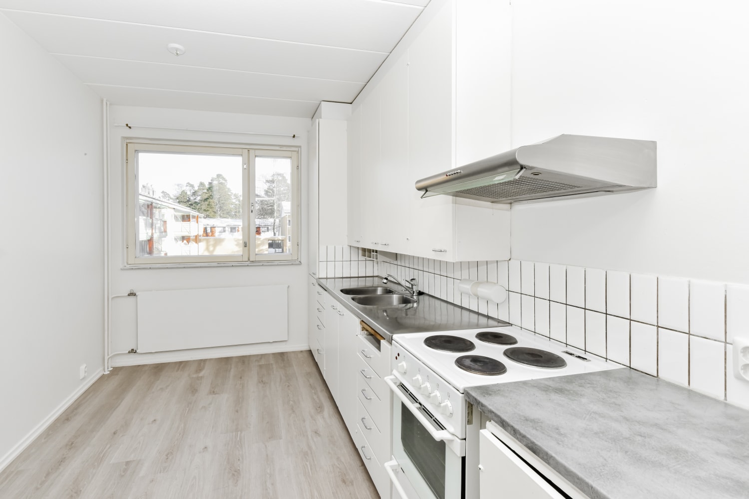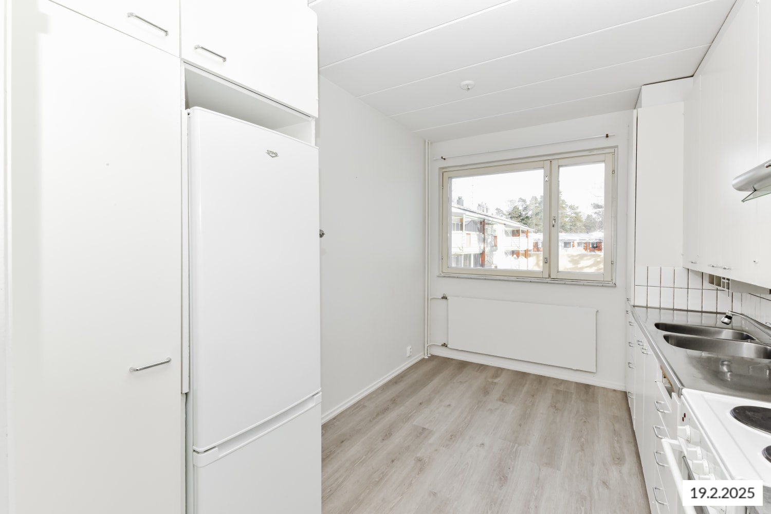 Viehättävän retrohenkisessä, vaaleapintaisessa keittiössä on paikka ruokapöydälle. Lounaaseen avautuvalla lasitetulla parvekkeella on mukava viettää aikaa pitkälle syksyyn. Asuinhuoneiden lattiamateriaalina on helppohoitoinen laminaatti. Osittain kaakeloidussa kylpyhuoneessa on varaus pyykinpesukoneelle. Keittiössä on jää-pakastinkaappi, nelilevyinen liesi sekä liesituuletin.