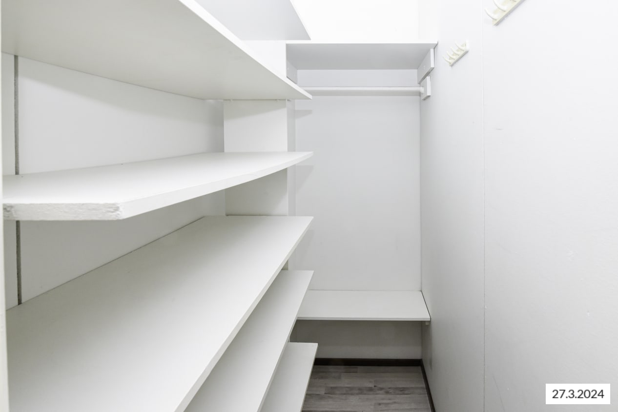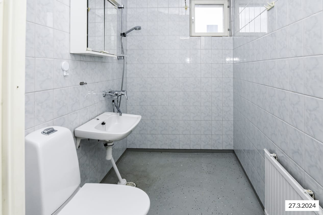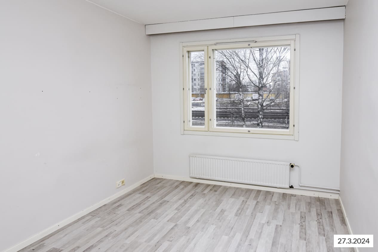 Matalan kerrostalon toisessa kerroksessa oleva valoisa ja avara kaksio on helppo kalustaa omaksi kodiksi. Osittain remontoidun asunnon kaikissa huoneissa on vaaleanharmaa laminaattilattia ja valkoiseksi maalatut seinät. Olohuoneessa ja makuuhuoneessa on yksi hillityn harmaaksi maalattu tehosteseinä. Jos tehosteseinien väri ei tunnu omalta, saat halutessasi veloituksetta remonttisetin, jolla voit maalata itse seinät juuri sen värisiksi kuin haluat. Vaaleasävyisessä keittiössä on runsaasti sekä kaappi- että työskentelytilaa ja ikkunan eteen sopii mainiosti vähän suurempikin ruokapöytä. Mukavasti säilytystilaa löytyy makuuhuoneen yhteydessä sijaitsevasta erillisestä vaatehuoneesta sekä valkoisesta eteiskaapistosta. Ikkunallinen kylpyhuone on valoisa ja tilava ja siellä on varaus pesukoneelle. Olohuoneen jatkeena on rauhalliselle sisäpihalle avautuva parveke.