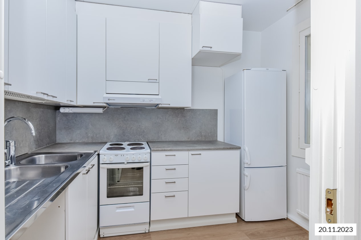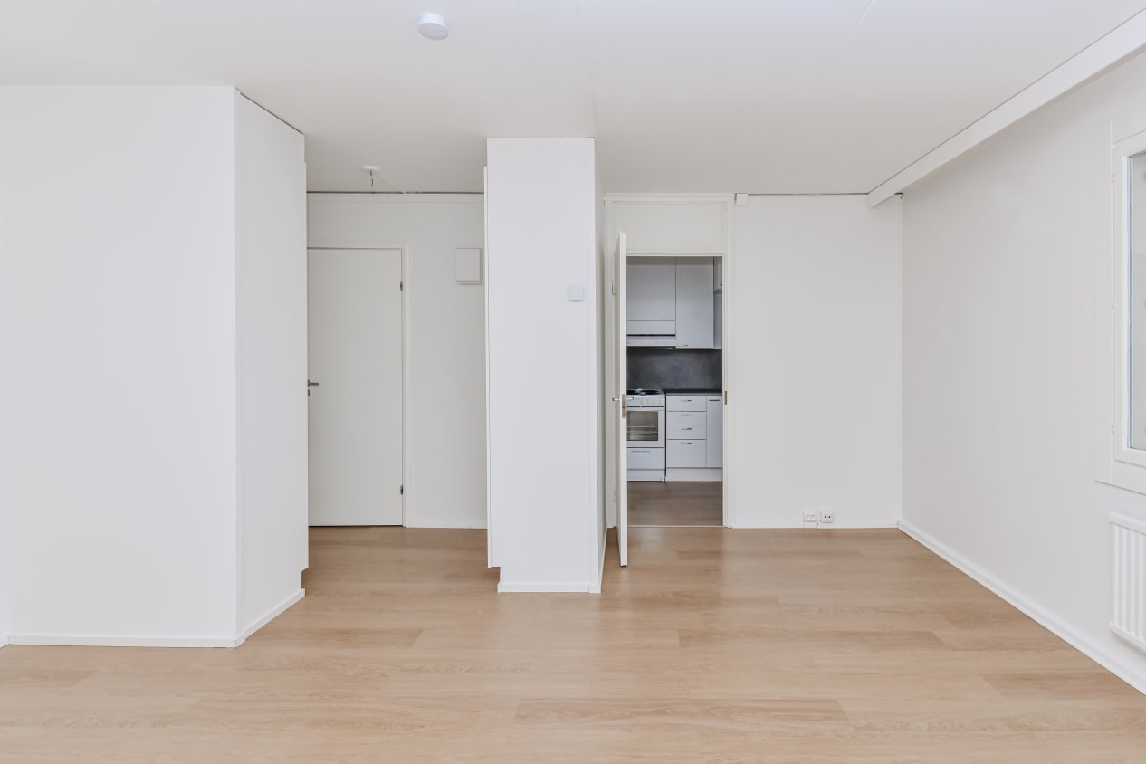 Kodikas pikkuyksiö on tehopohjainen. Kaappitila on keskittynyt eteiseen. Kaapit rajaavat oleskelutilaan alkovisyvennyksen, johon voit sisustaa nukkumanurkkauksen tai vaikka työpisteen. Ikkunallinen keittokomero on käytännöllinen, ja siellä on tilaa astianpesukoneellesikin. Kylpyhuoneessa on paikka pyykinpesukoneelle.