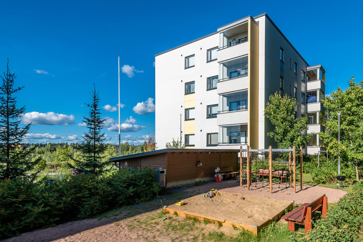 46 kpl ja yhtiöllä on omat 56 kpl autopaikkaa. Asunnoissa on tilava lasitettu parveke. Asuntojen pohjaratkaisut ovat selkeitä ja avaria, keittiöt avautuvat oleskelutiloihin. Tilavissa kylpyhuoneissa on pesukonetta ja/tai kuivauskonetta varten tilavaraus ja liitännät.