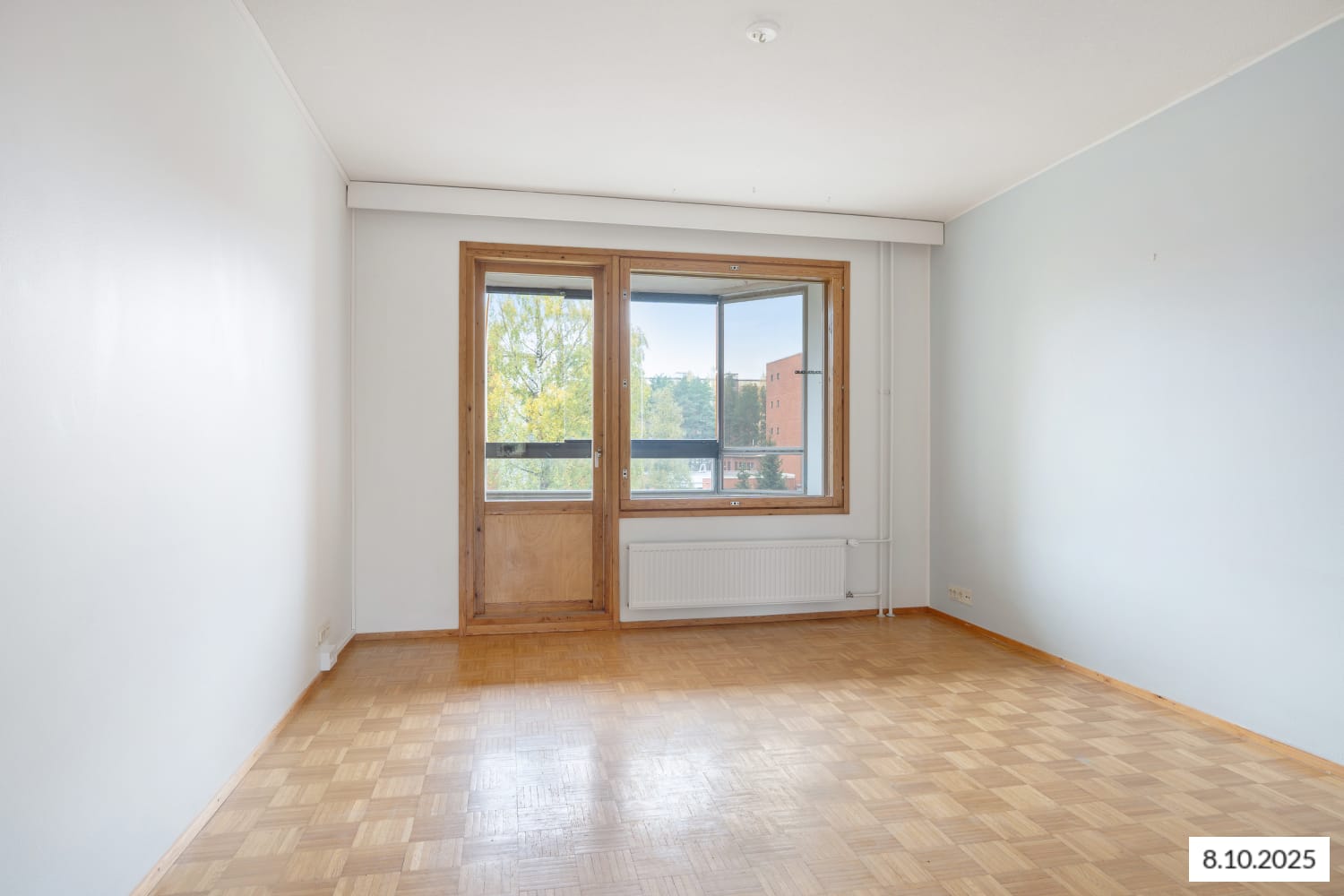 Retrohenkisessä kaksiossa on toimiva tilanjako: reilun kokoinen olohuone, siitä hieman erillään oleva keittiö ja makuuhuone. Selkeä tilanjako tarjoaa useita vaihtoehtoja sisustaa kodista juuri omannäköinen. Avaraan olohuoneeseen on helppo sijoittaa sekä sohvaryhmä sekä tarvittaessa ruokapöytä. Kesällä voit jatkaa oleskelutilaa omalle, lasitetulle parvekkeelle. Kaappeja on runsaasti sekä eteisessä että molemmissa makuuhuoneissa.