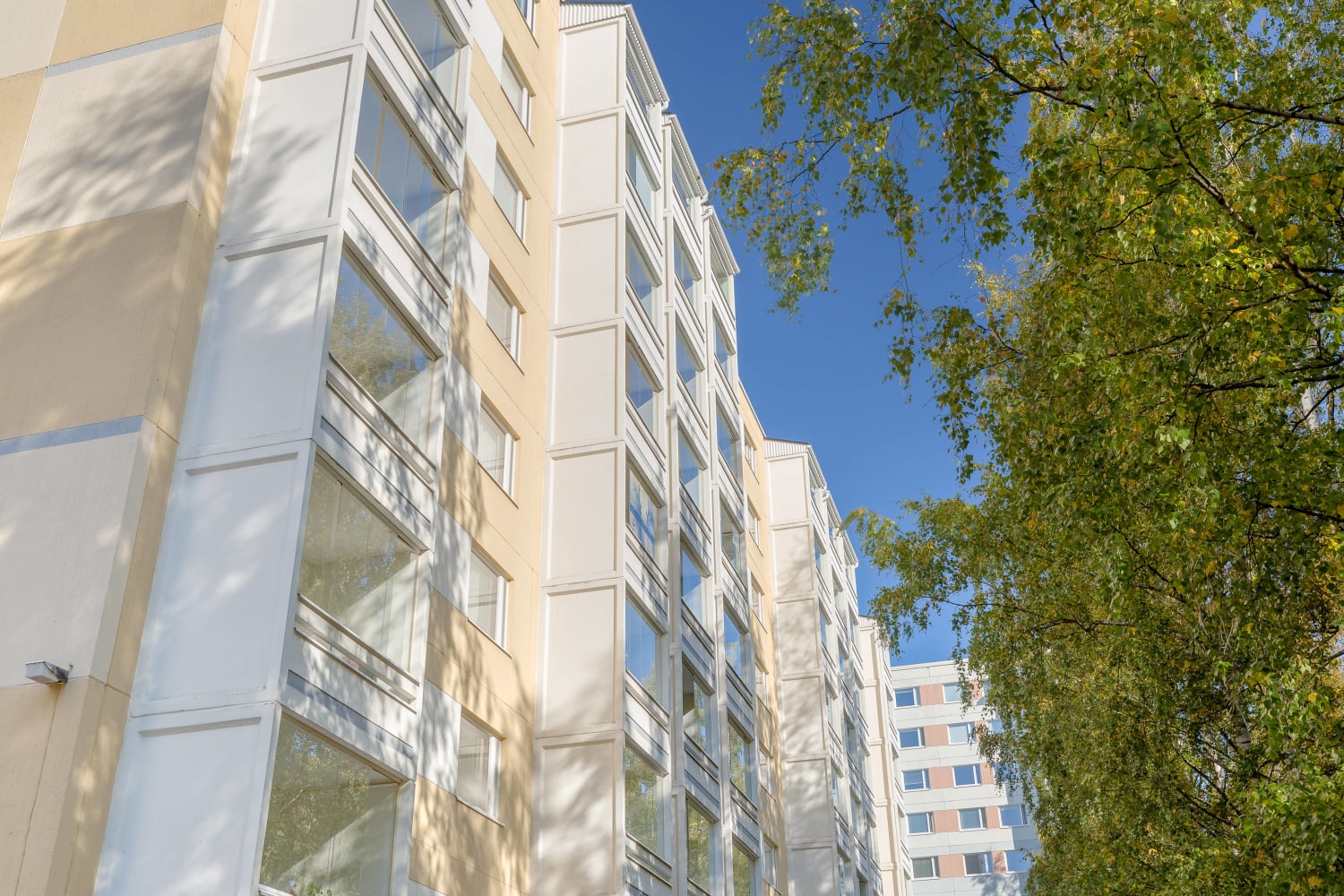 Hissillinen kerrostalo on rakennettu 1977 ja siinä on kahdeksan kerrosta. Tasakattoinen, vaaleansävyinen ja siisti kerrostalo omaa autopaikkoja pihalla. Lemmikkieläimet ovat taloyhtiössä sallittuja.