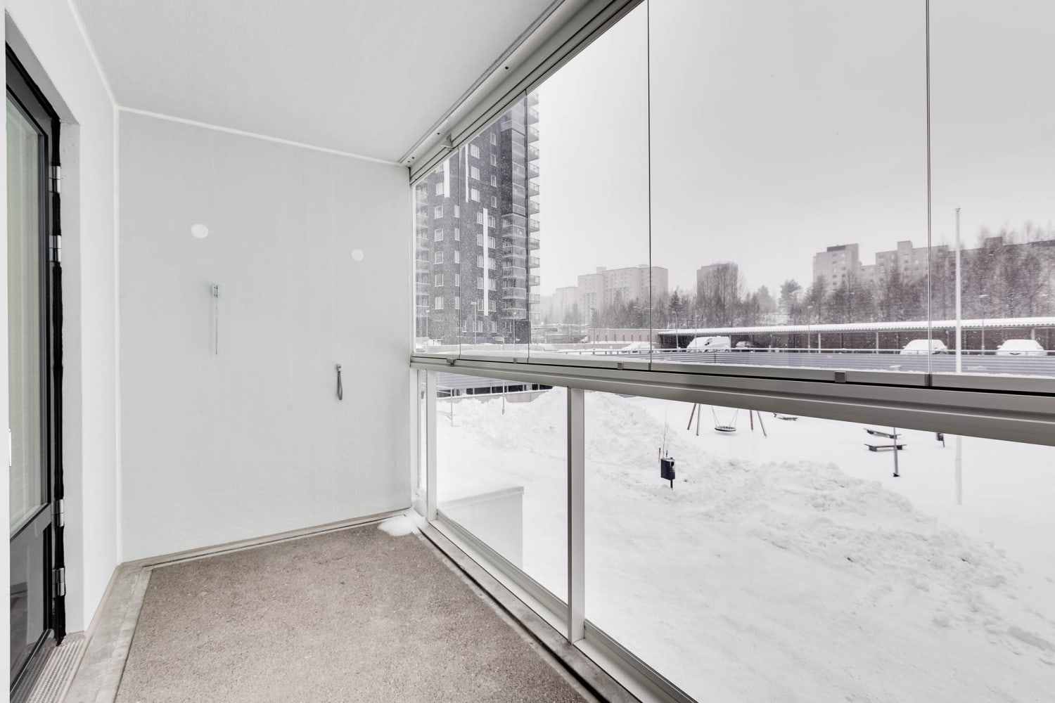 Kompaktin vuokra-asunnon sydän on olohuone, johon avokeittiö yhdistyy. Pieni ruokapöytä sopii keittiön puolelle ja rauhallinen nukkumapaikka löytyy alkovista. Säilytystilaa on eteisen kaapiston lisäksi vaatehuoneessa. Tehokkaan tilasuunnittelun ansiosta pikkukotiin mahtuu myös oma sauna, jonka löylyistä kelpaa nauttia.