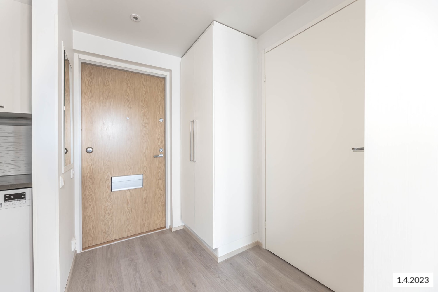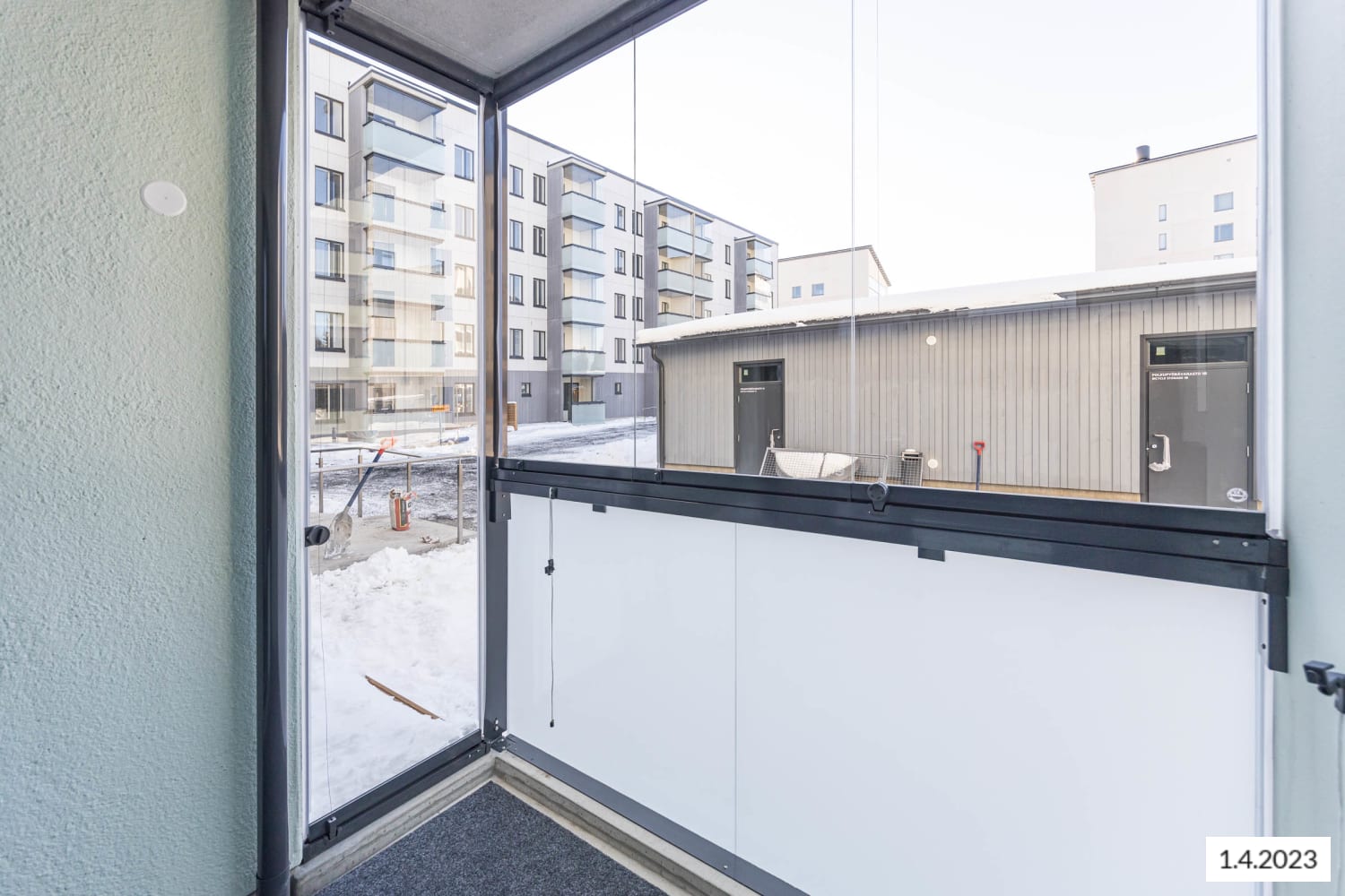 Sympaattisessa kaksiossa kaikelle löytyy oma paikkansa: selkeä tilanjako tarjoaa useita vaihtoehtoja sisustaa kodista juuri omannäköinen. Mukavankokoisen makuuhuoneen saa erotettua olohuoneesta liukuovin ja siellä on runsaasti kaappitilaa. Kesällä voit jatkaa oleskelutilaa lasitetun parvekkeen kautta omalle terassille. Tehopohjaisessa kylpyhuoneessa on paikka ja liitännät pesukoneelle. Kodin vaaleasävyiset materiaalit toimivat neutraalina pohjana mille tahansa sisustustyylille. Olisiko tämä sinun uusi vuokrakotisi?