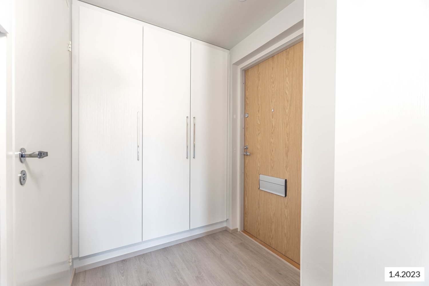 Sympaattisessa yksiössä kaikelle löytyy oma paikkansa: selkeä pohjaratkaisu tarjoaa useita vaihtoehtoja sisustaa kodista juuri omannäköinen. Olohuoneesta on erotettu seinällä viihtyisä alkovisoppi, joka lisää tilan monikäyttöisyyttä. Kesällä oleskelualue jatkuu omalle, lasitetulle parvekkeelle. Kaappeja on sekä eteisessä, avokeittiössä että alkovissa. Tehopohjaisessa kylpyhuoneessa on paikka ja liitännät pesukoneelle. Kodin vaaleasävyiset materiaalit toimivat neutraalina pohjana mille tahansa sisustustyylille. Olisiko tämä sinun uusi vuokrakotisi?