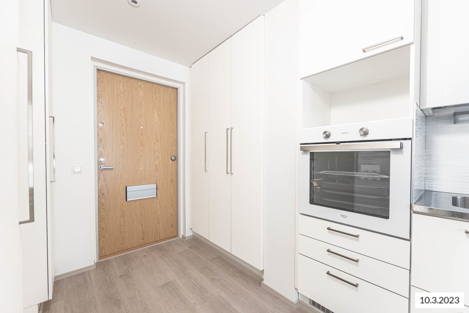 Sympaattisessa kaksiossa kaikelle löytyy oma paikkansa: selkeä tilanjako tarjoaa useita vaihtoehtoja sisustaa kodista juuri omannäköinen. Arjen toimivuutta lisää kätevä vaatehuone. Kesällä voit jatkaa oleskelutilaa omalle, lasitetulle parvekkeelle. Tehopohjaisessa kylpyhuoneessa on paikka ja liitännät pesukoneelle. Kodin vaaleasävyiset materiaalit toimivat neutraalina pohjana mille tahansa sisustustyylille. Olisiko tämä sinun uusi vuokrakotisi?