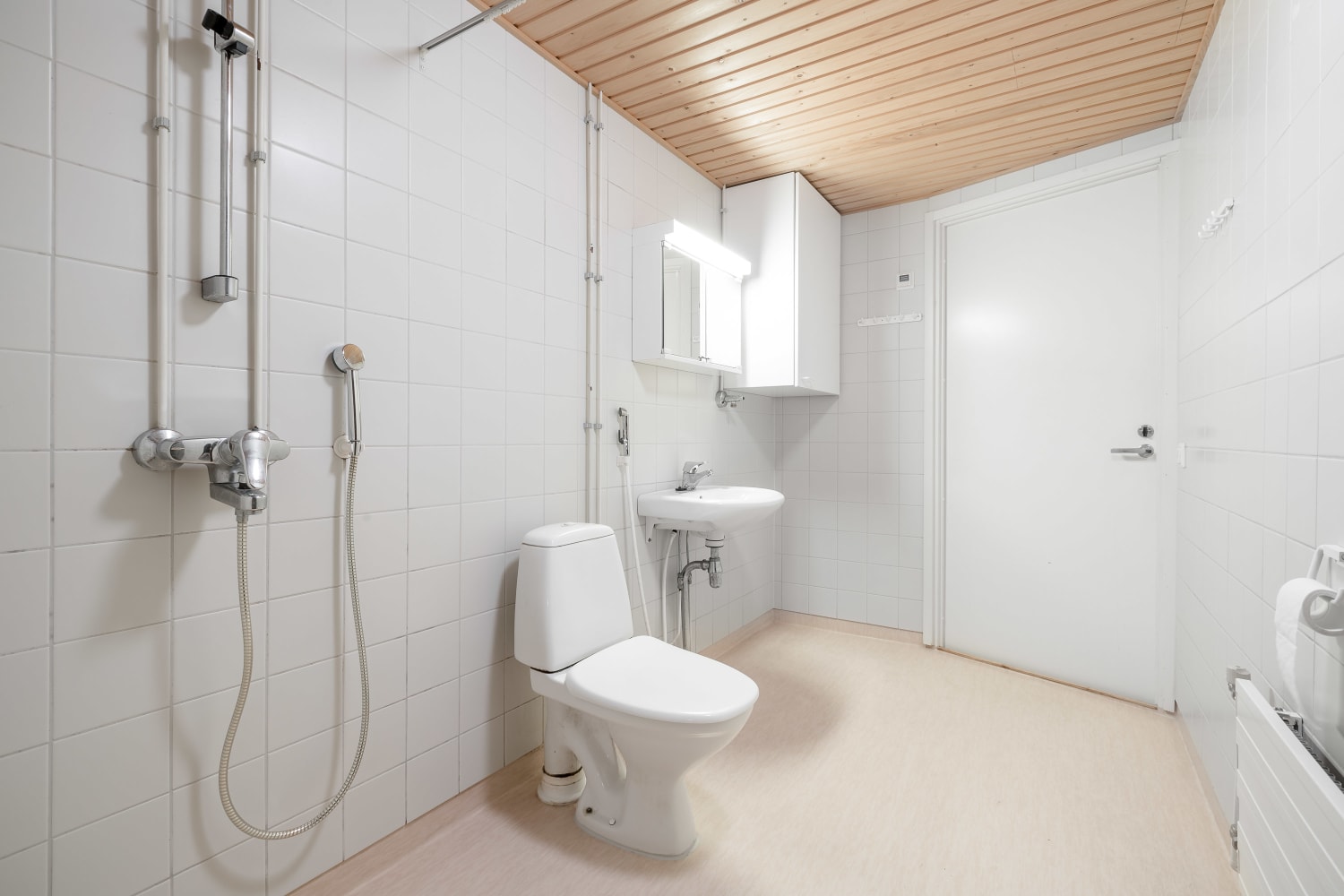 Tyylikäs ja avara kaksio etsii uusia asukkaita! Keittiötila yhdistyy mukavasti olohuoneen kanssa luoden miellyttävän oleskelutilan kotiin. Makuuhuoneessa on valmista säilytystilaa korkeissa valkoisissa kaapeissa. Kodin lattiat ovat tammilaminaattia ja seinät on maalattu.