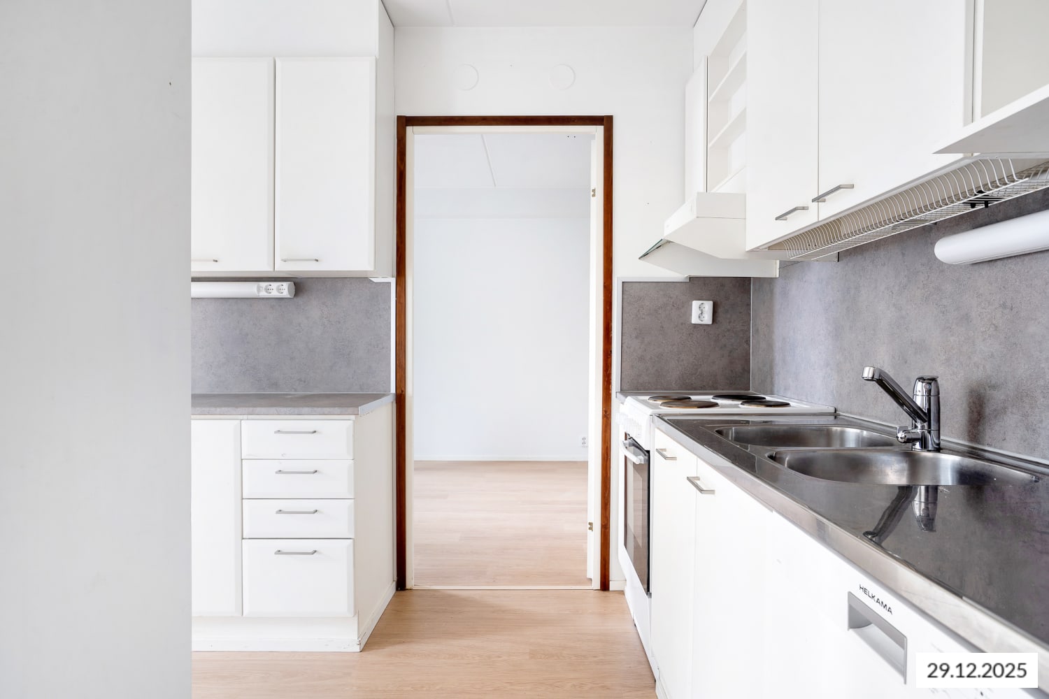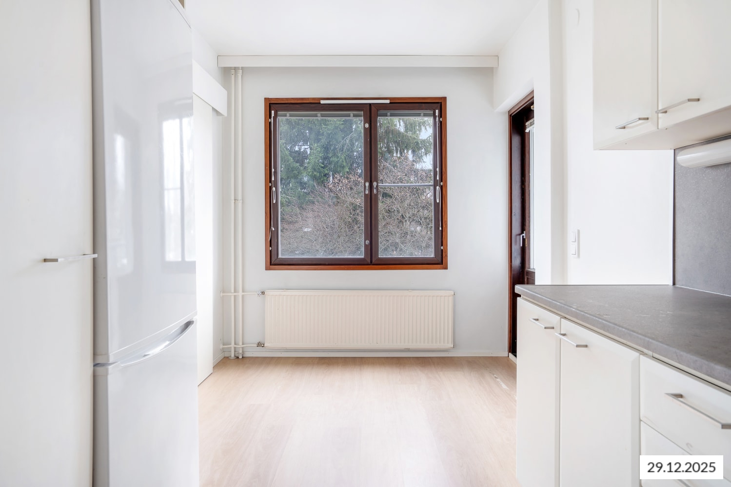 Viihtyisässä, vuonna 1994 valmistuneessa kaksiossa on selkeä, helposti kalustettava pohjaratkaisu. Seesteisen rauhalliset pintamateriaalit tekevät tästä vuokrakodista helposti omaan makuusi sisustettavan.