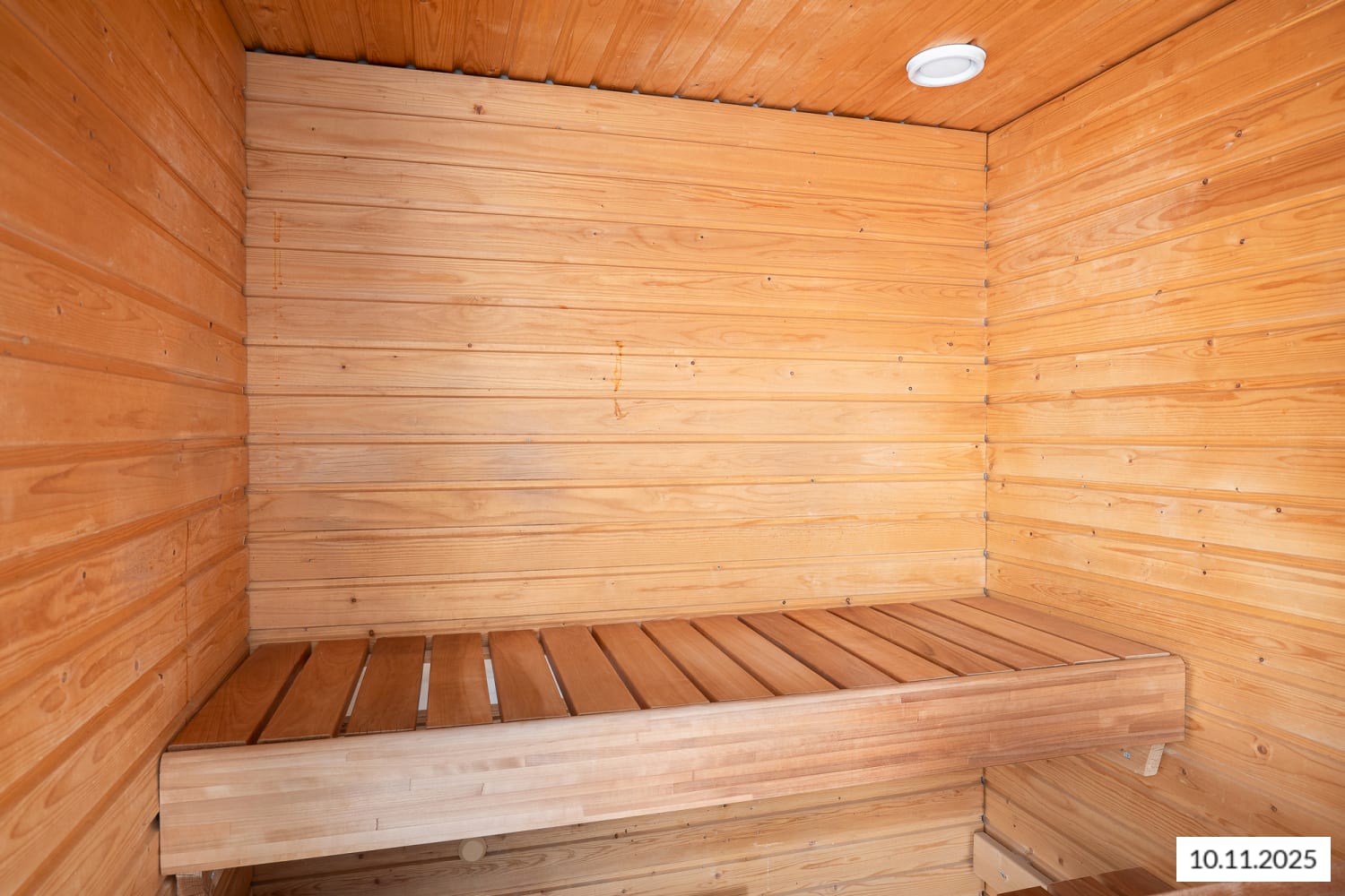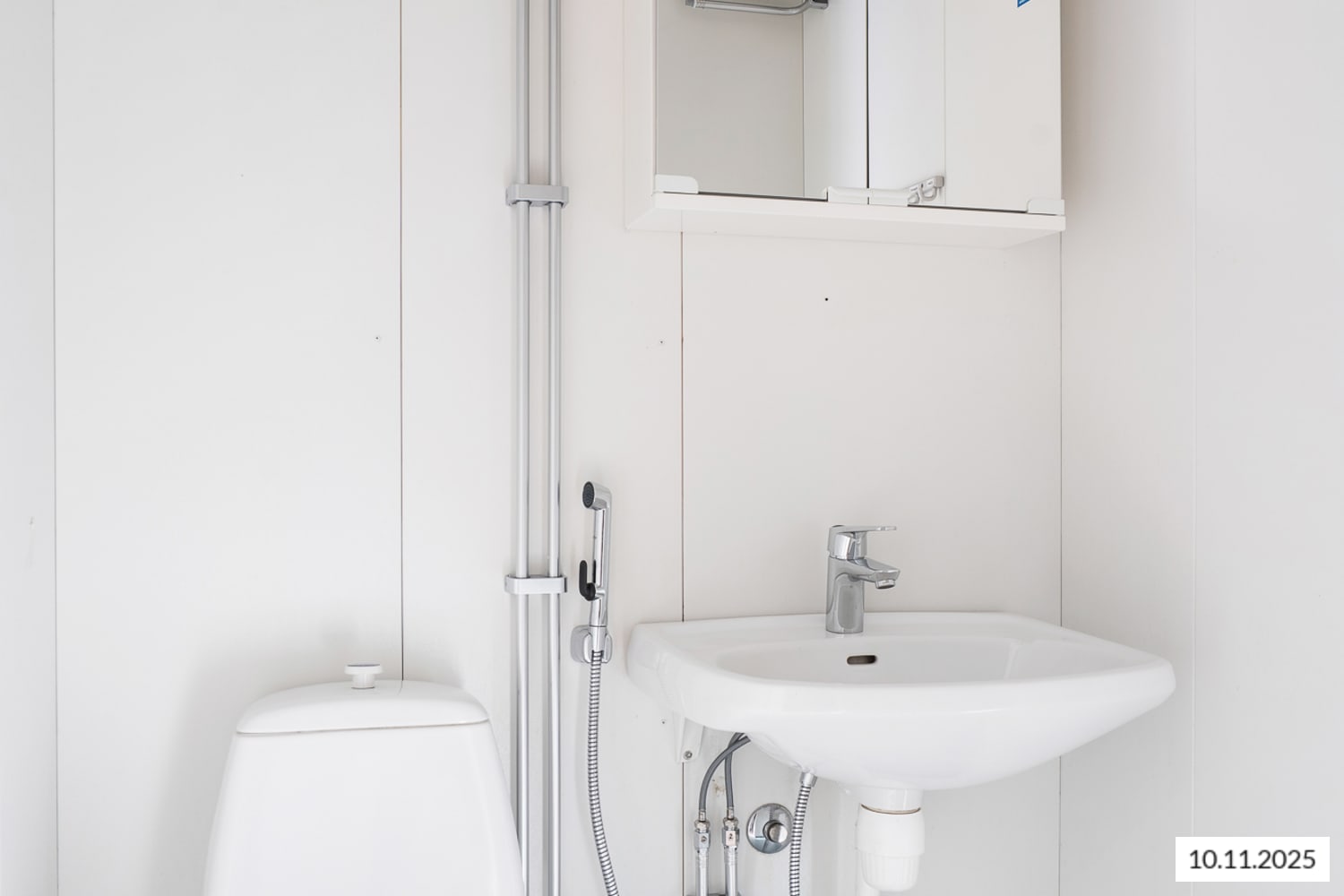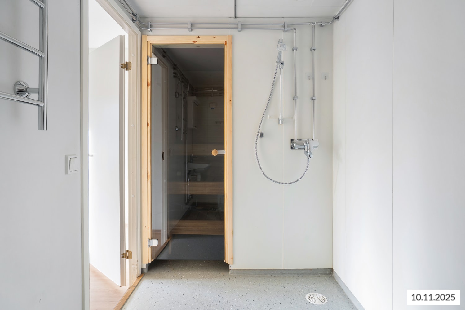 Keittiössä on keraaminen liesi, jääkaappi-pakastin ja tilaa ruokapöydälle ikkunan ääressä. Myös astianpesukoneellesi on paikka. Kylpyhuoneessa on pyykinpesukoneen tulo- ja poistoliitännät.
