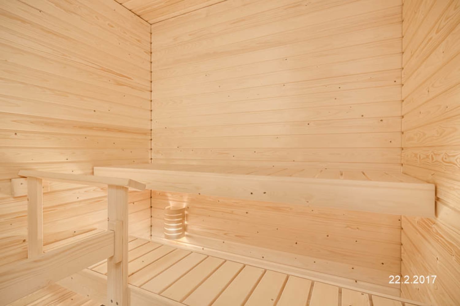 Vaalein sävyin sisustetun kaksion keittiötila yhdistyy olohuoneeseen ja ruokapöytä sopii mukavasti ikkunan alle. Makuuhuoneessa on ylellisen paljon vaatteiden säilytystilaa erillisessä vaatehuoneessa. Oma sauna tarjoaa mukavan hetken rentoutumiselle. Metallikaiteinen ranskalainen parveke tuo lisää valoa ja avaruutta olohuoneeseen.