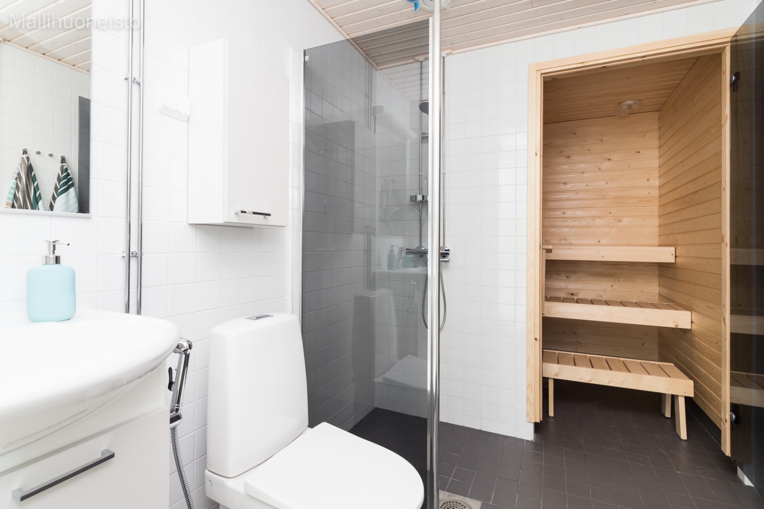 Kodikas ja selkeälinjainen kolmio on helppo kalustaa asujansa näköiseksi. Keittiössä on kotikokille mukavasti tilaa häärätä ja sinne mahtuu ruokapöytäkin. Olohuoneesta pääsee aurinkoisena kesähuoneena toimivalle lasitetulle parvekkeelle. Oman saunan löylyissä kelpaa rentoutua päivän päätteeksi.