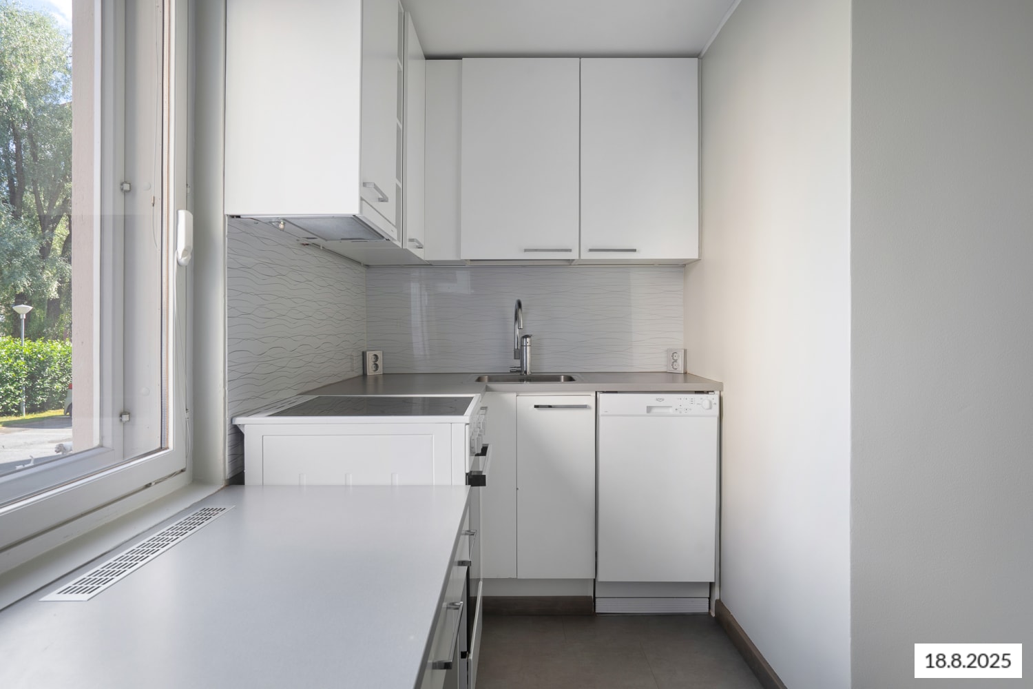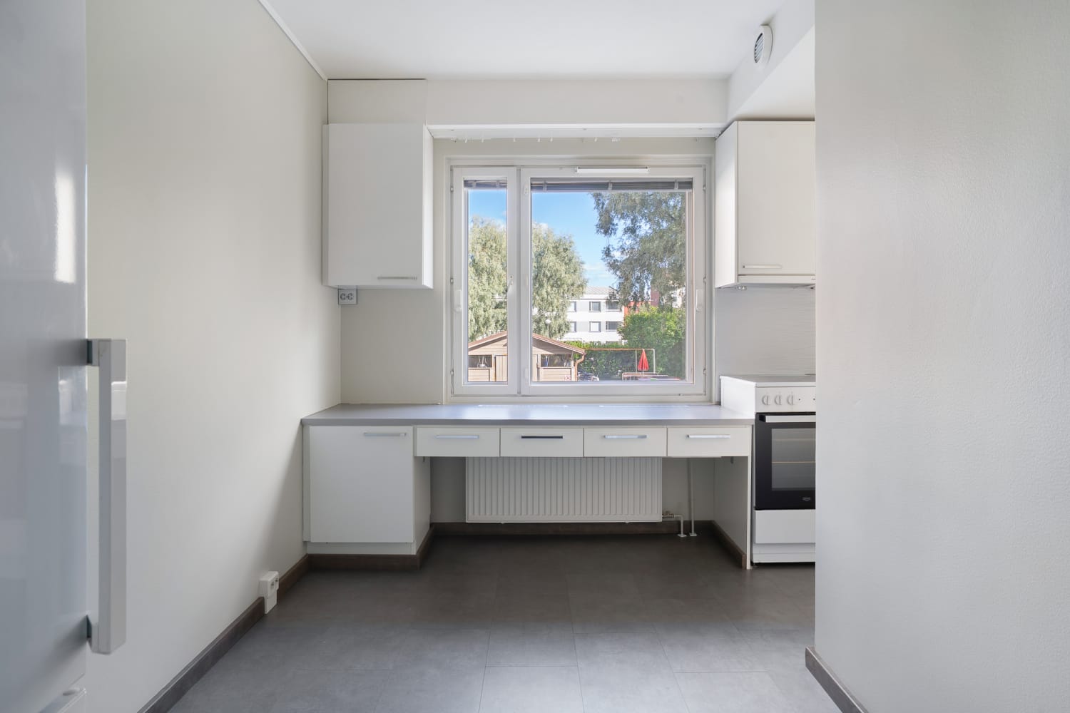 Valoisan läpitalon kaksion kalustat helposti omaksi kodiksi. Erillisessä keittiössä mahdut mukavasti sekä kokkailemaan että ruokailemaan. Makuuhuoneen vaatehuoneessa on hyvin tilaa vaatesäilytykselle. Olohuoneesta on käynti aurinkoiselle parvekkeelle, joka on sisäpihan suojissa.