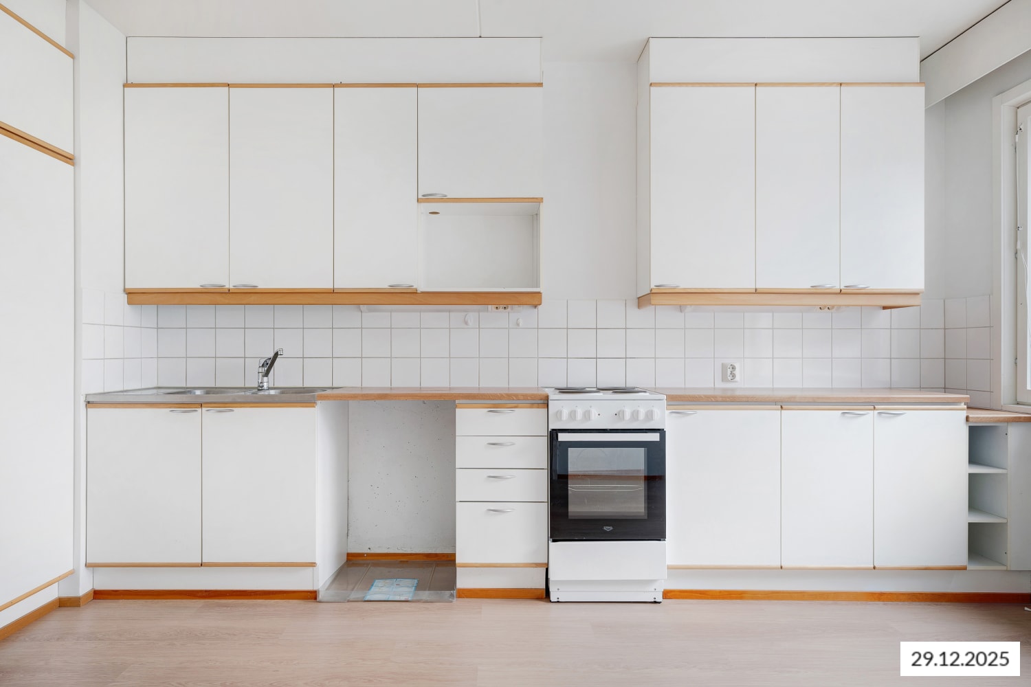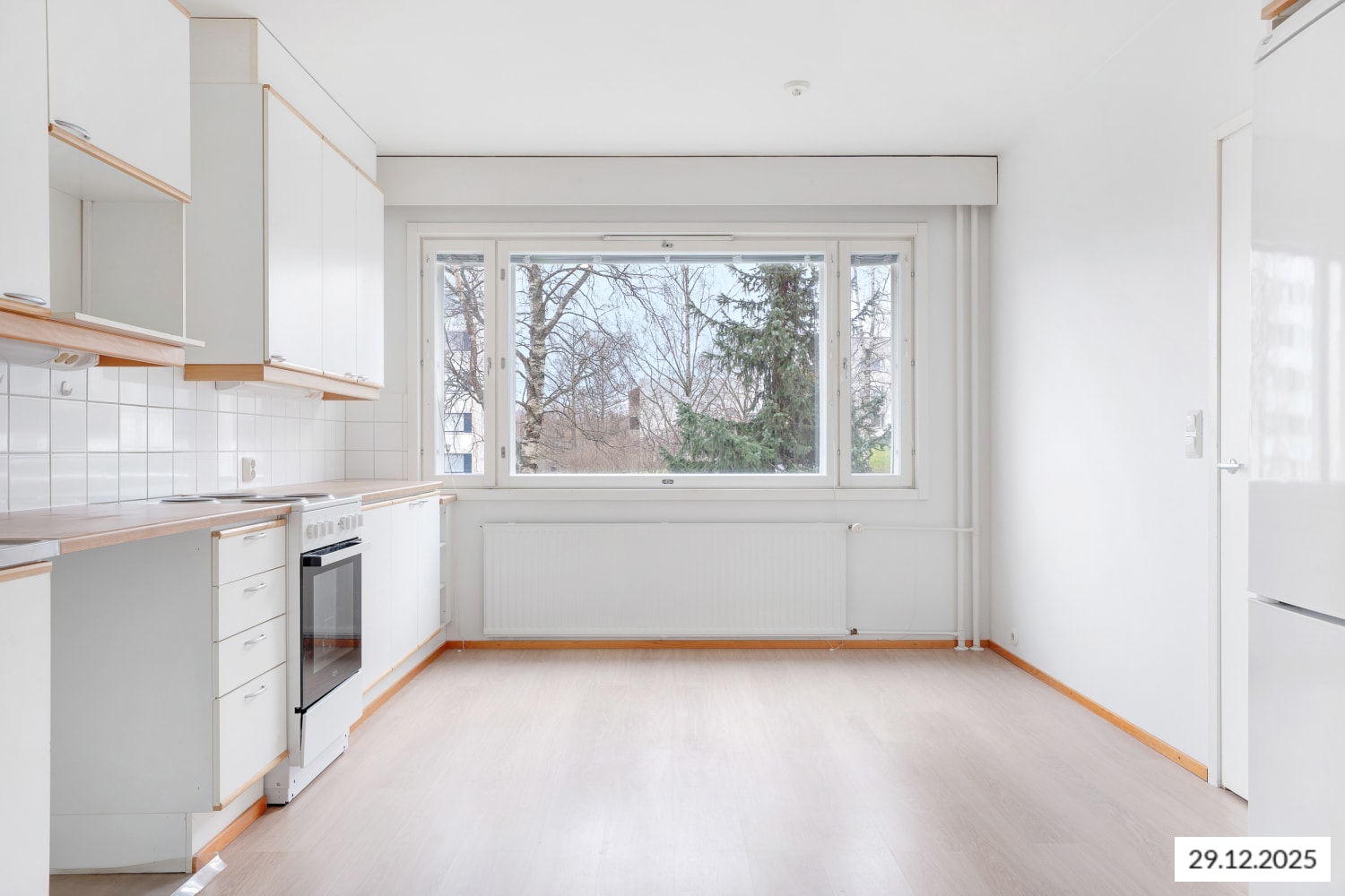 Keittiö on tilava ja on paikka astianpesukoneellesi. Keittiöön mahtuu myös isompikin ruokapöytä kodikkaasti ikkunan äärelle. Erillinen pikku-wc sujuvoittaa arkea.