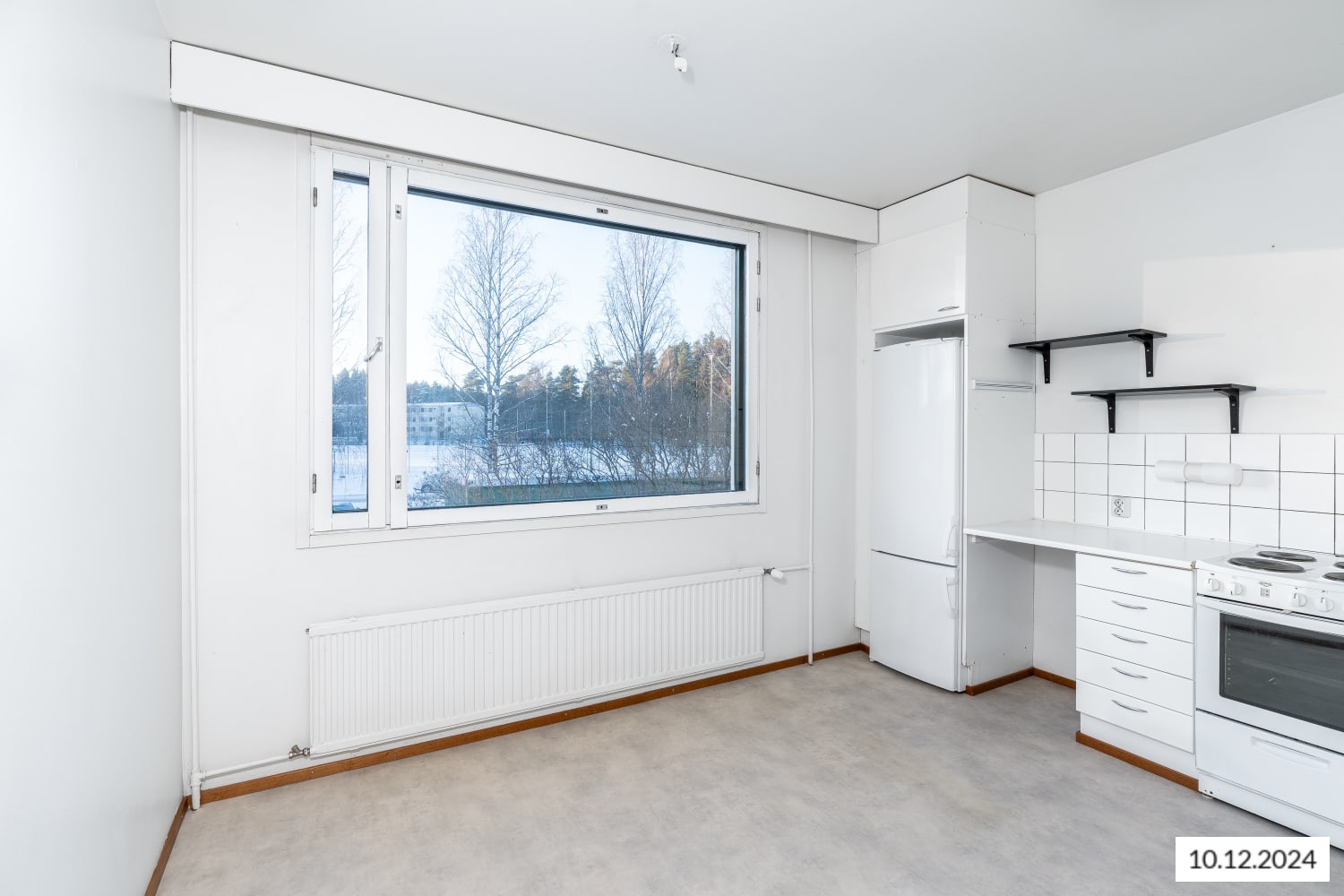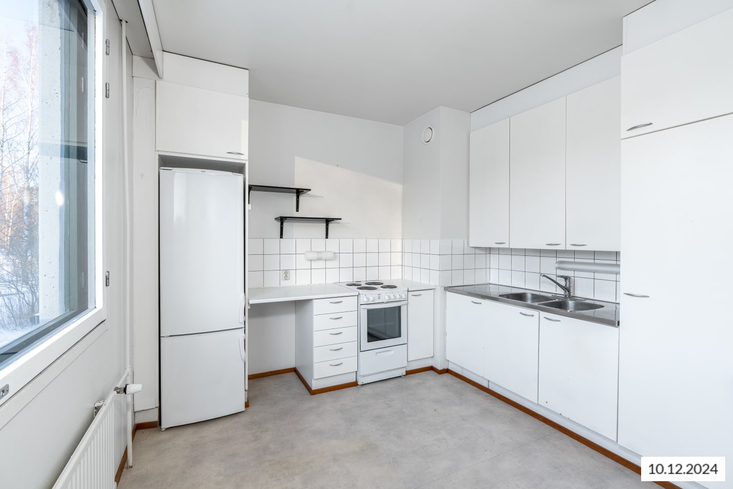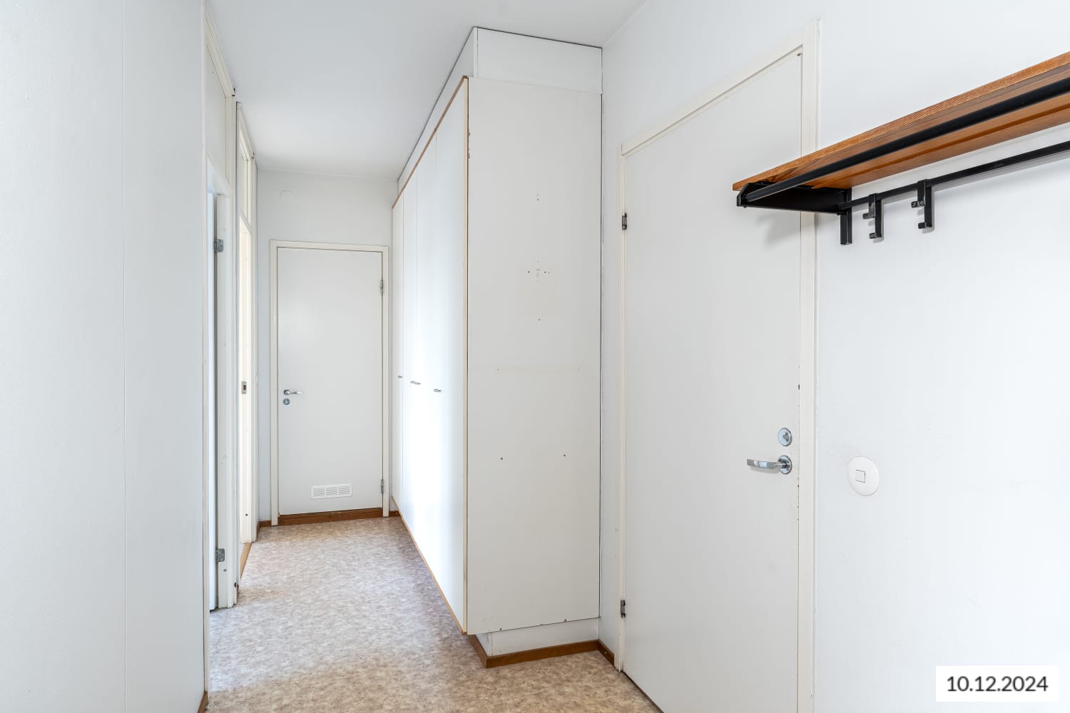 Kaksiossa on konstailematon ja toimiva pohjaratkaisu sekä kotoisat puitteet. Eteisessä on valmista säilytystilaa korkeissa kaapeissa ja valoisaan keittiöön mahtuu mukavasti ruokapöytä. Makuuhuone sekä tilava olohuone ovat helposti sisustettavia. Keittiön varustukseen kuuluu jääkaappipakastin, lattiauuni ja perinteinen liesi. Keittiössä on myös liitännät astianpesukoneelle. Kylpyhuone on kokonaan laatoitettu ja omaa tilavarauksen pyykinpesukoneelle.