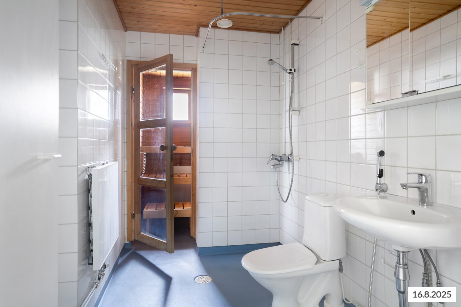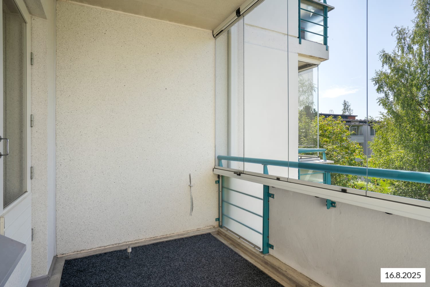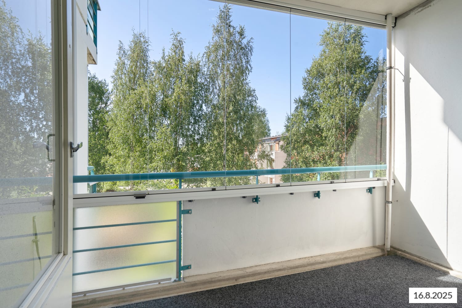 Tässä kaksiossa ihastuttaa iki-oma sauna sekä lasitettu parveke, jossa nauttia raikkaasta ilmasta löylyjen välissä. Pohja on perinteinen ja helppo sisustaa. Kodissa on erillinen makuuhuone, jossa on valmista säilytystilaa korkeissa kaapeissa. Keittiöön mahtuu mukavasti pienempi ruokapöytä ikkunan eteen. Kylpyhuoneessa on tilavaraus pyykinpesukoneelle.