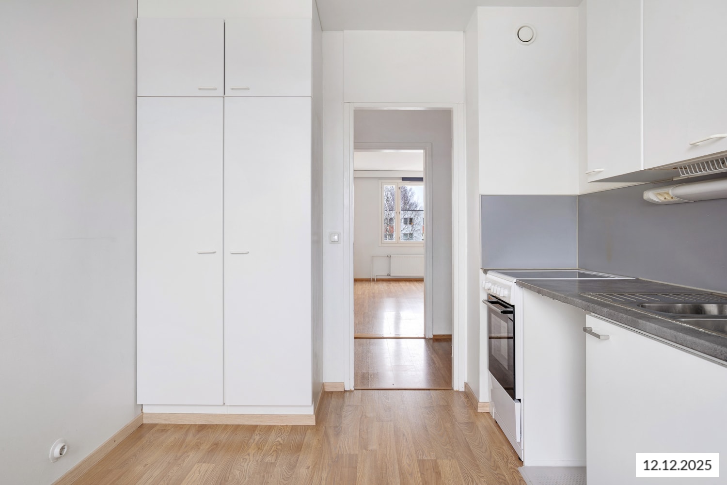 Läpitalon huoneiston keittiö on näppärä. Kylpyhuoneessa on liitännät pyykkikoneelle. Erillinen pikku-wc sujuvoittaa arkea.