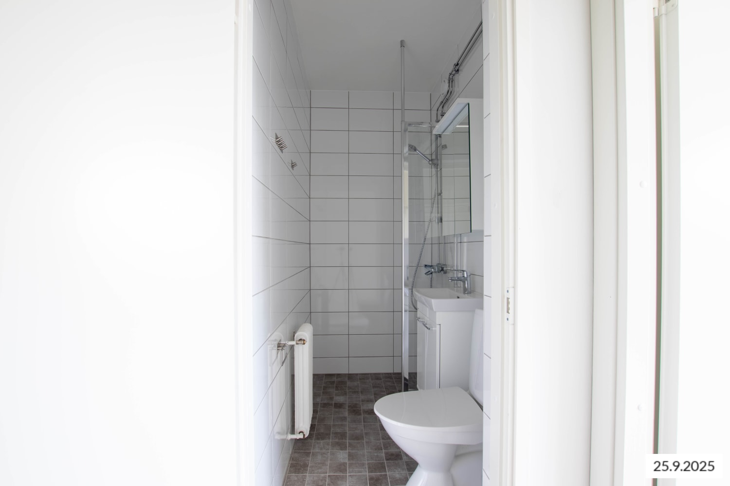 Keittokomero on kompakti ja kätevä, ja kylpyhuone on kaakeloitu, tuoden arkeesi ripauksen luksusta. Asunto on helppo sisustaa tyylikkääksi kodiksi.
