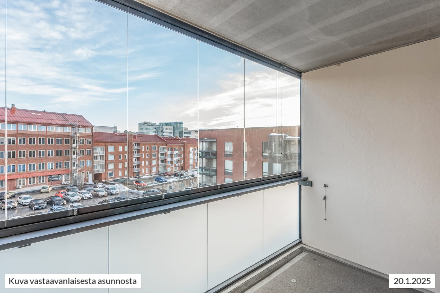 Ratinan sydämessä sijaitseva nykyaikainen yksiö kutsuu viihtymään. Koko asunnon levyisen, lasitetun parvekkeen voit sisustaa vaikka omaksi kesäkeitaaksi.