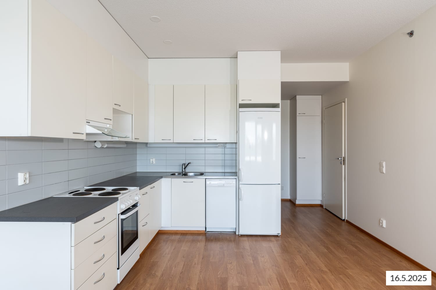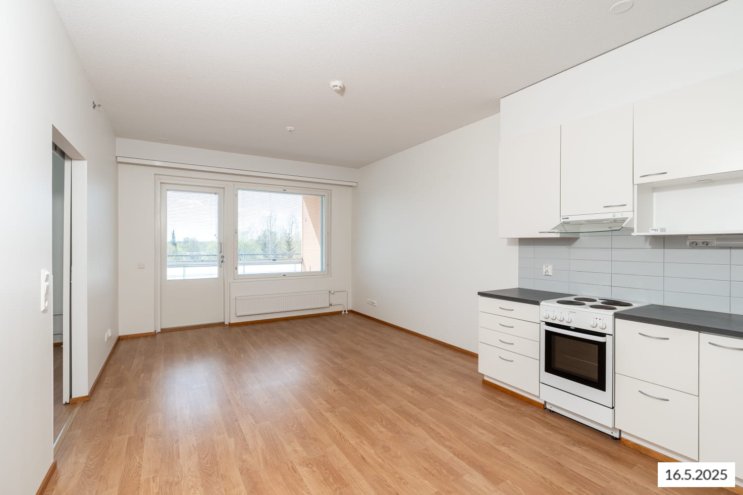 Asuinhuoneiden lattiat ovat helppohoitoista ja tyylikästä laminaattia. Kaakeloidussa kylpyhuoneessa on mukavuuslattialämmitys. Keittiövarustuksena ovat jää-pakastinkaappi ja nelilevyinen sähköliesi, molemmat valkoisia. Kaapistossa on tilavaraus myös mikroaaltouunille.