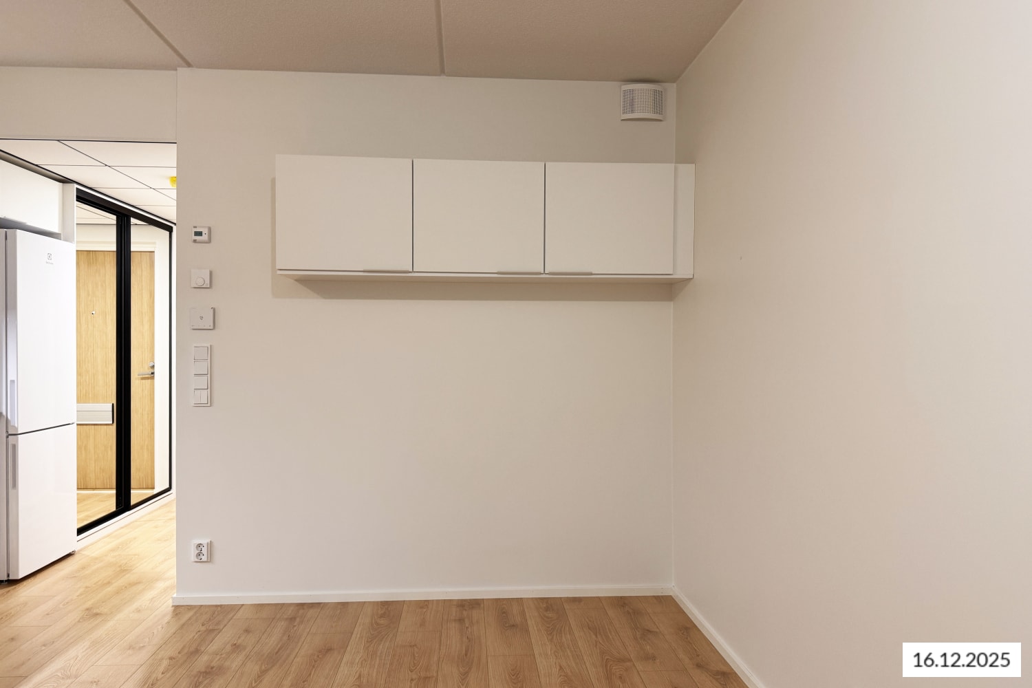 Tyylikkäässä, huolella suunnitellussa yksiössä laatu ja kestävyys ovat etusijalla. Tarkoin valitut sisustusmateriaalit luovat ajattoman pohjan omalle, persoonalliselle tyylillesi. Avoin keittotila yhdistyy oleskelutilaan luoden ilmavan oleskelutilan.