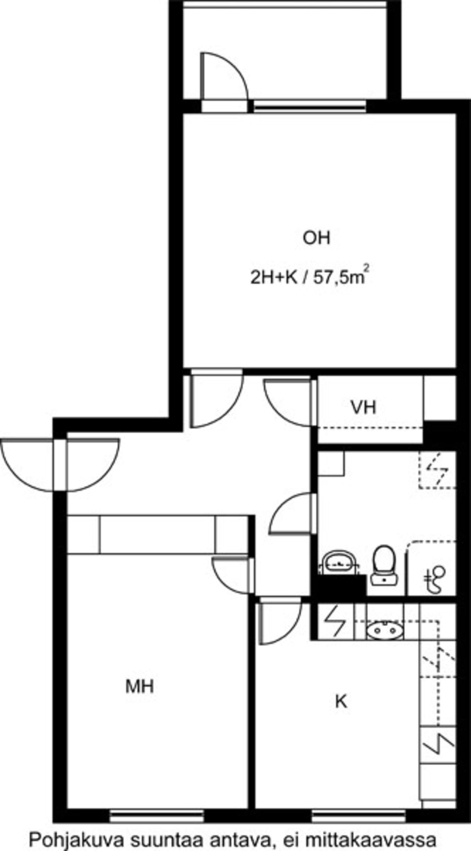Erillisessä keittiössä on perinteinen liesi ja jääkaappi ja sinne mahtuu mukavasti myös ruokapöytä perheen yhteisiä ateriahetkiä varten. Tilavassa kylpyhuoneessa on paikka pyykkikoneelle.
