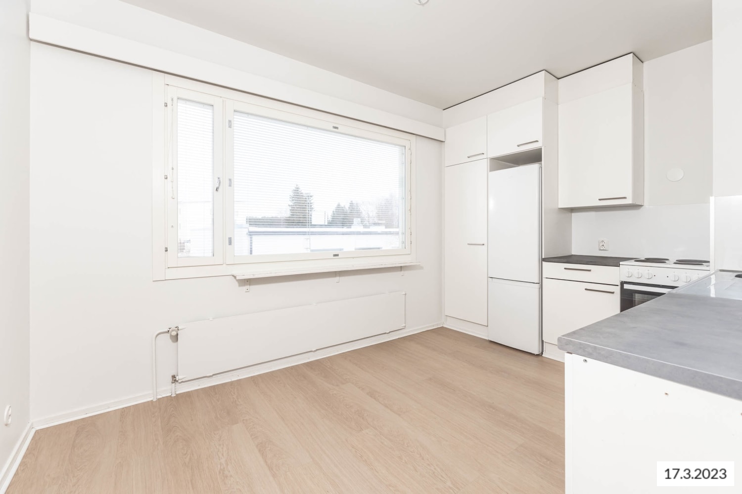 Tilava ja valoisa läpitalon kolmio lähellä palveluita. Asunnossa on tehty hiukan remonttia ja päivitetty mm. keittiön kaappeja ja työtasoja 3/2023.