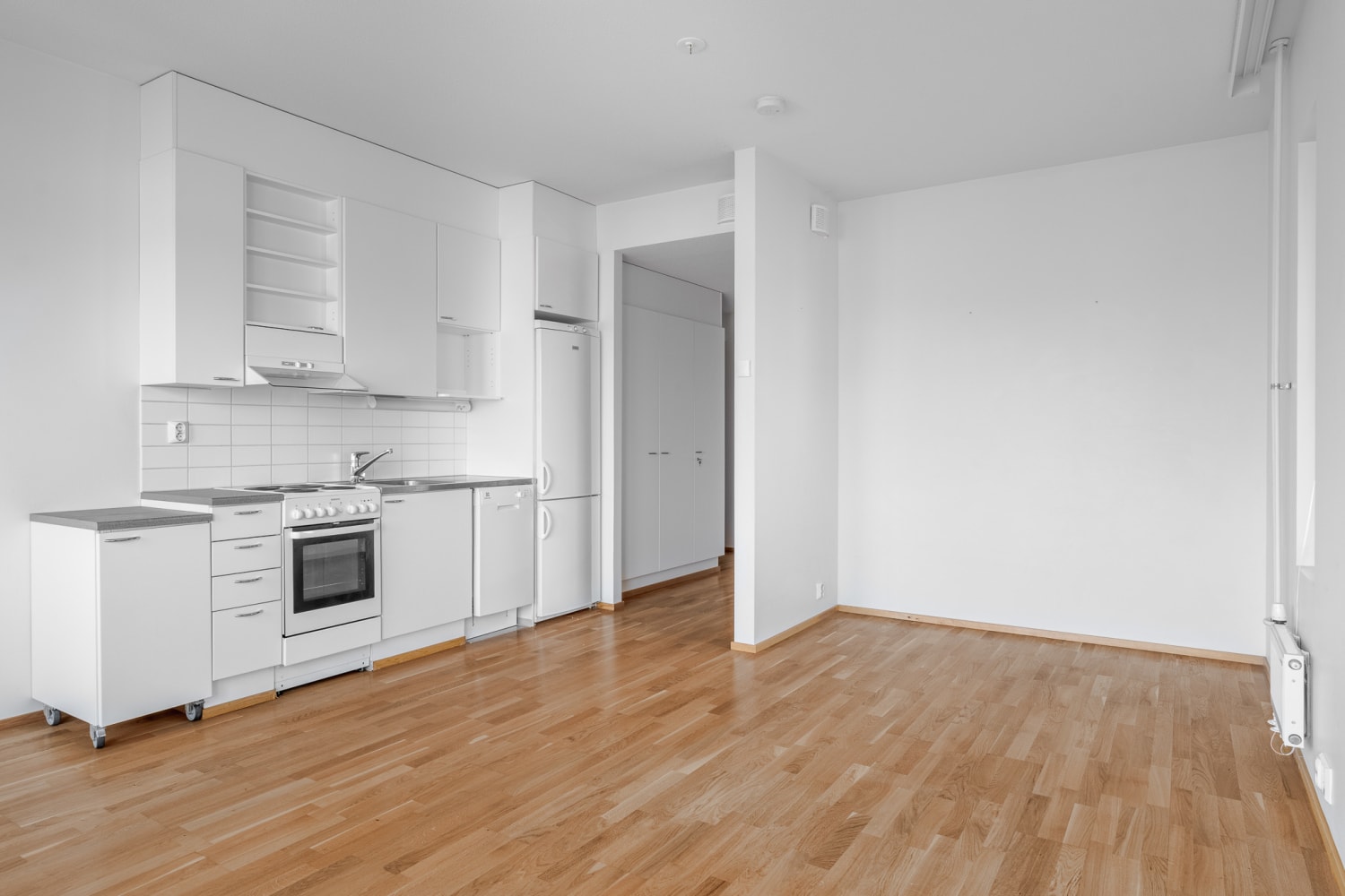 Fiksupohjaisessa yksiössä on kätevä alkovisyvennys, jonne sisustat kotoisan nukkumasopen tai vaikka työtilan. Asunnon parkettilattiat tuovat lämpöä sisustukseen.