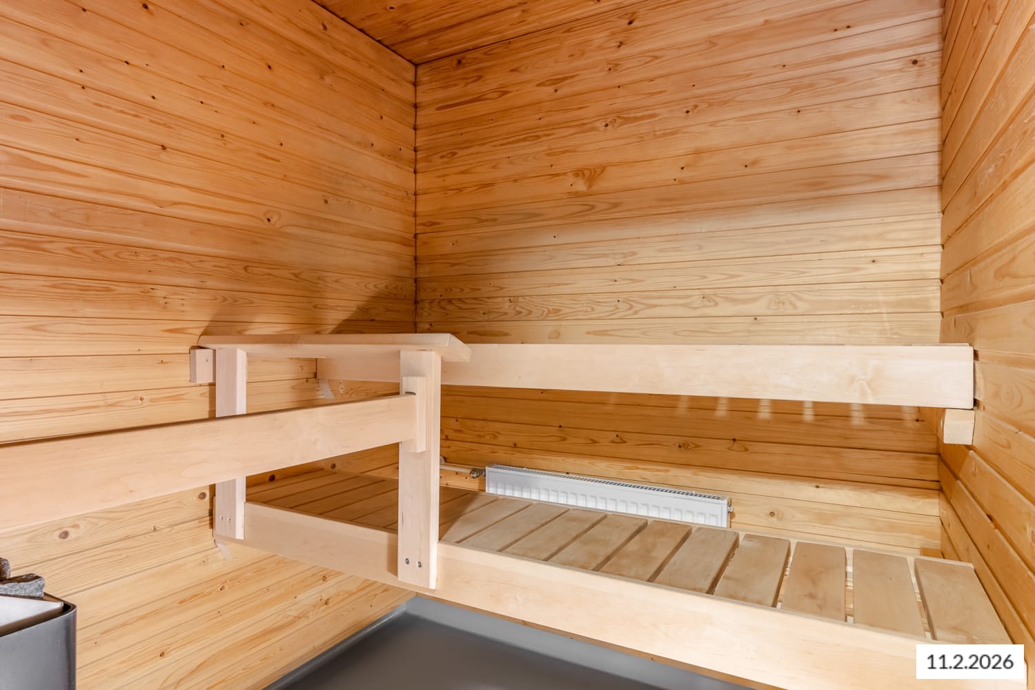 Selkeälinjaisen kaksion erilliseen keittiöön mahtuu kunnollinen ruokapöytä. Olohuoneesta pääsee aamuaurinkoon pihan puolelle suuntautuvalle parvekkeelle, jossa on mukava istahtaa vaikkapa vilvoittelemaan oman saunan löylyjen jälkeen. Valoisan makuuhuoneen yhteydessä on runsaasti komerotilaa vaatesäilytykselle. Taloyhtiö on savuton 1.10.2023 alkaen.