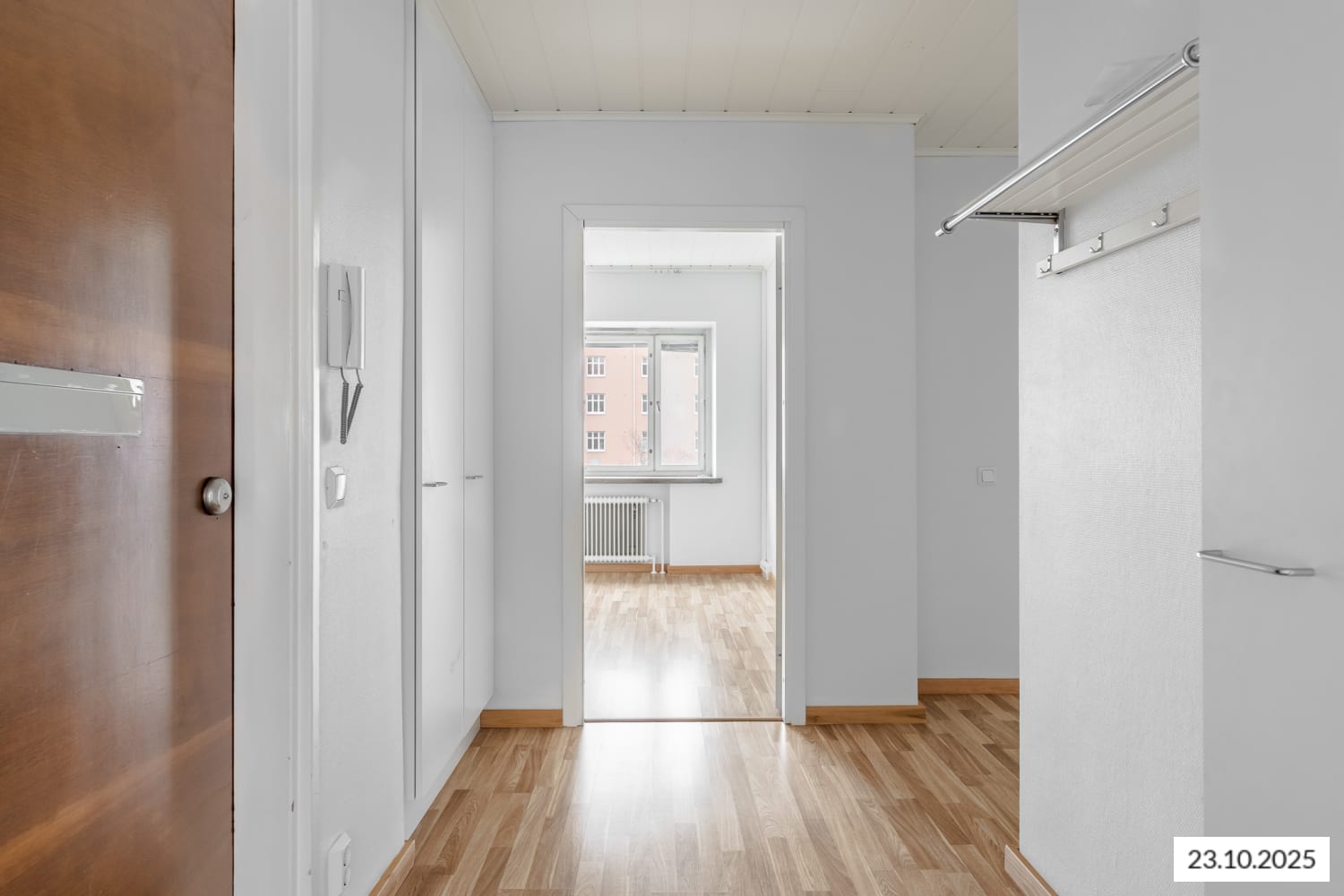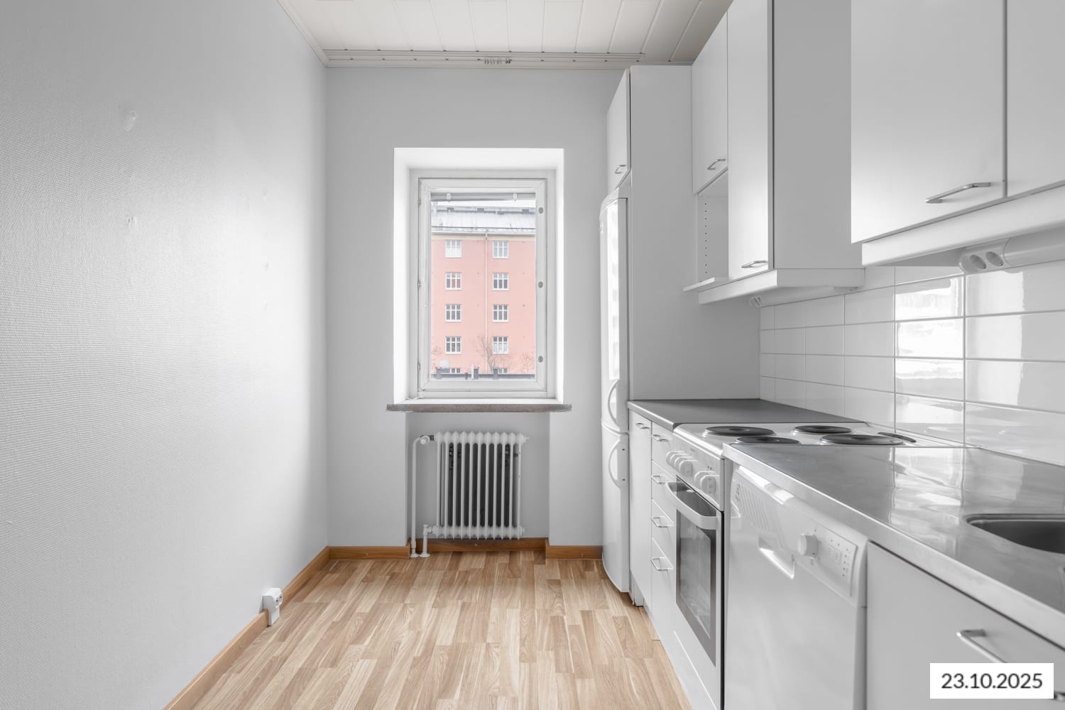 Tunnelmallinen ja perinteikäs kaksio sijaitsee loistopaikalla keskustan puistojen ja palveluiden tuntumassa. Asunnon olohuone sijoittuu pihan puolelle, ja keittiöstä avautuu näkymä Uudenmaankadun yli. Peruskorjauksesta valmistuneen kodin lattiat ovat kaunista tammilaminaattia.